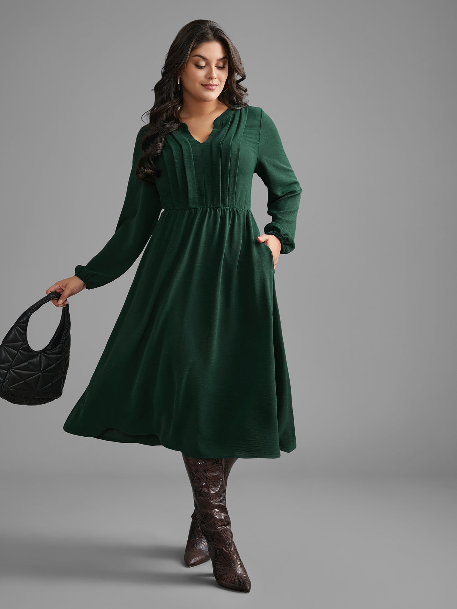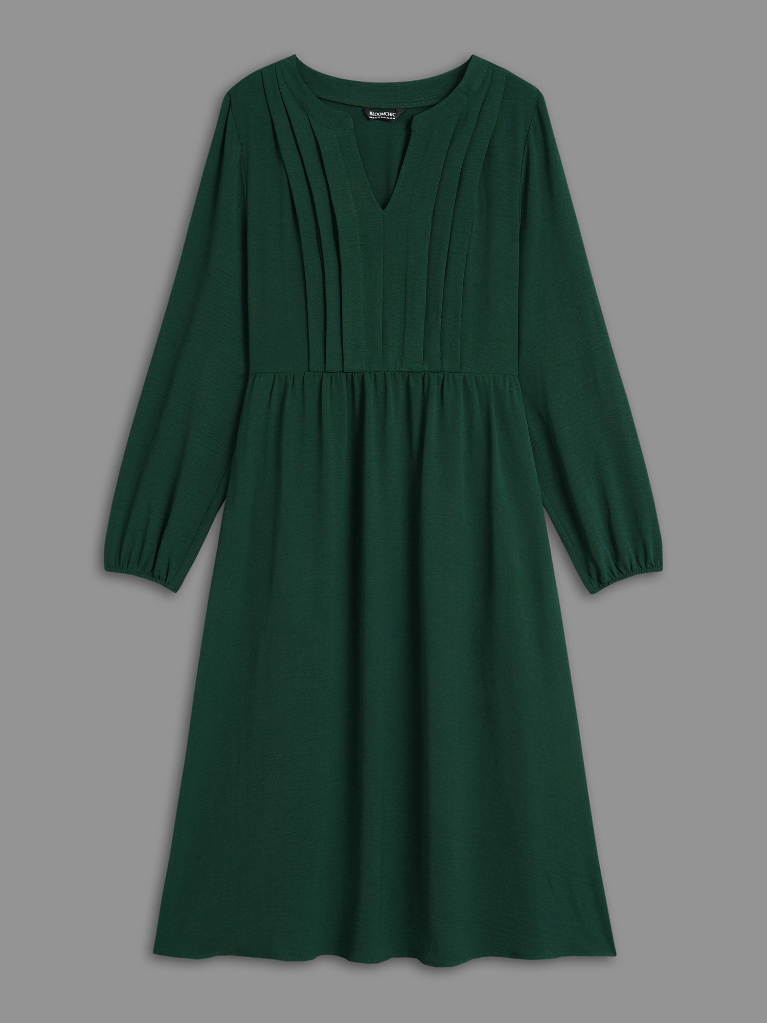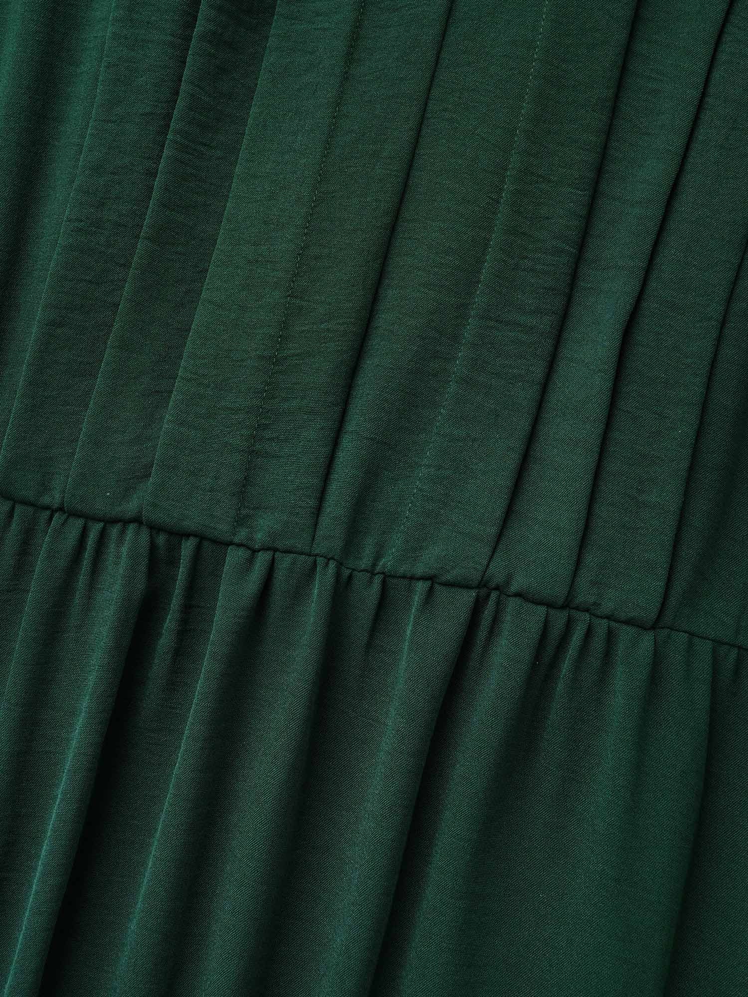 Shop Plain Notched Pleated Midi Dress now and redefine your style with confidence at Sweetccc. Tailored for mid and plus-size women. This trendy Dress. sizes 10-30. You can never go wrong with Sweetccc Dresses. Color:DarkGreen;Style:At the Office;Neckline:Flat collar;Sleeve Type:Lantern Sleeve;Prints:Non;Details:Pleated;Pocket:Side seam pocket;Belt:No-belt;Closure Type:Non