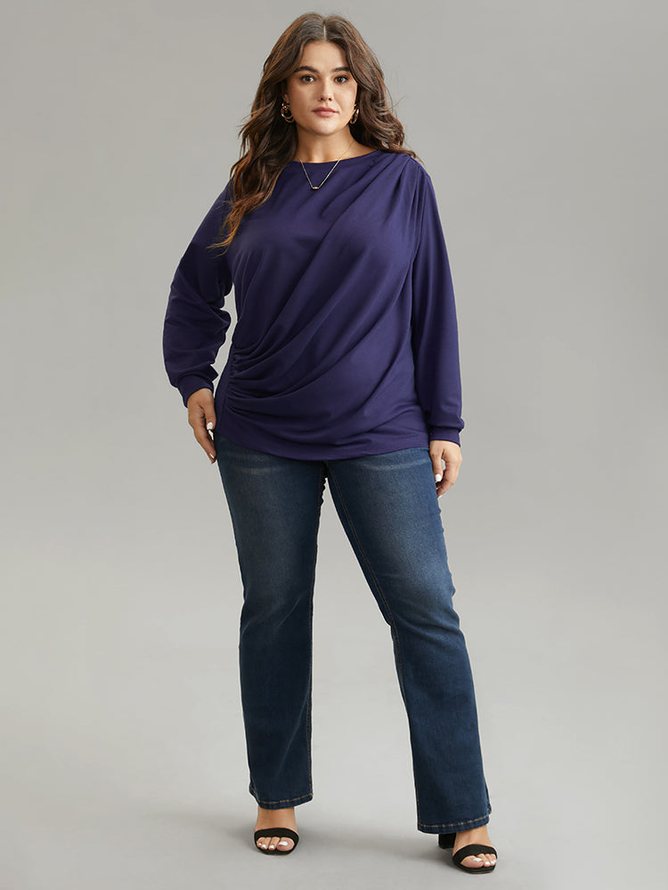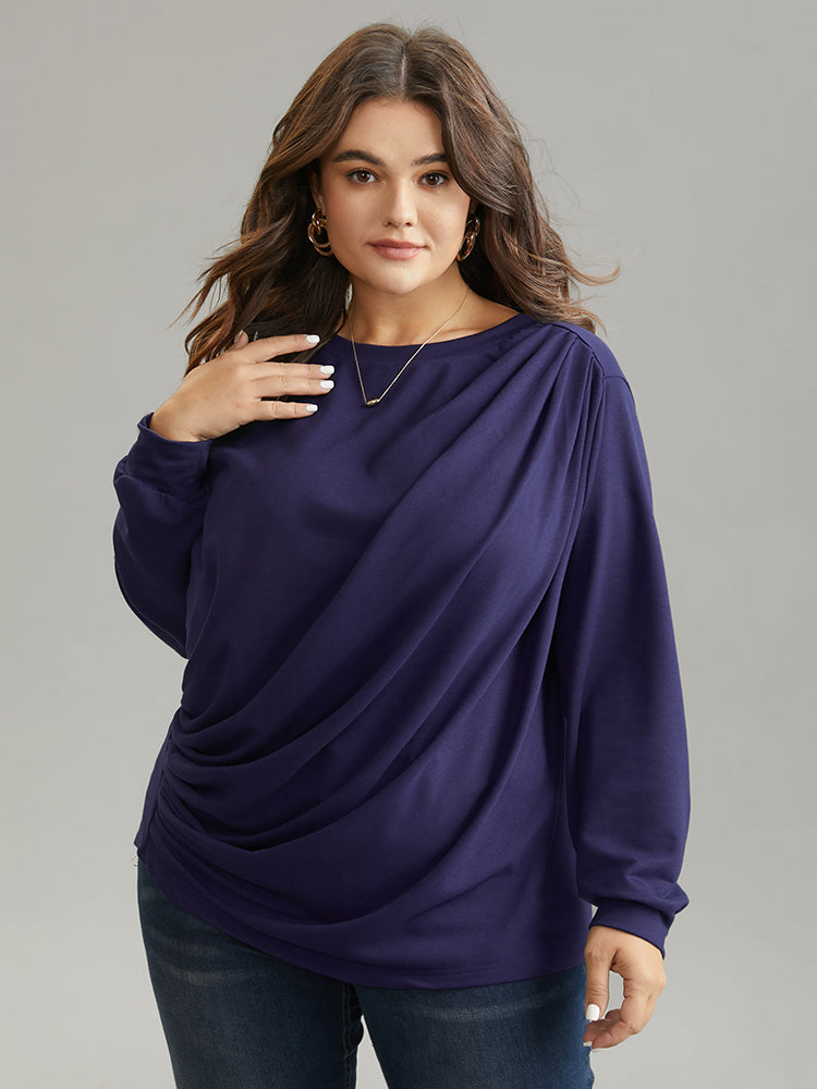 Shop Plain Pleated Round Neck Slightly Stretchy Sweatshirt now and redefine your style with confidence at Sweetccc. Tailored for mid and plus-size women. This trendy Tops Women. sizes 10-30. Season:Winter;Color:Eggplant;Neckline:Round Neck;Sleeve Type:Regular Sleeve;Pattern Type:Plain;Details:Plain. Pleated;Pocket:No-pocket;Belt:No-belt
