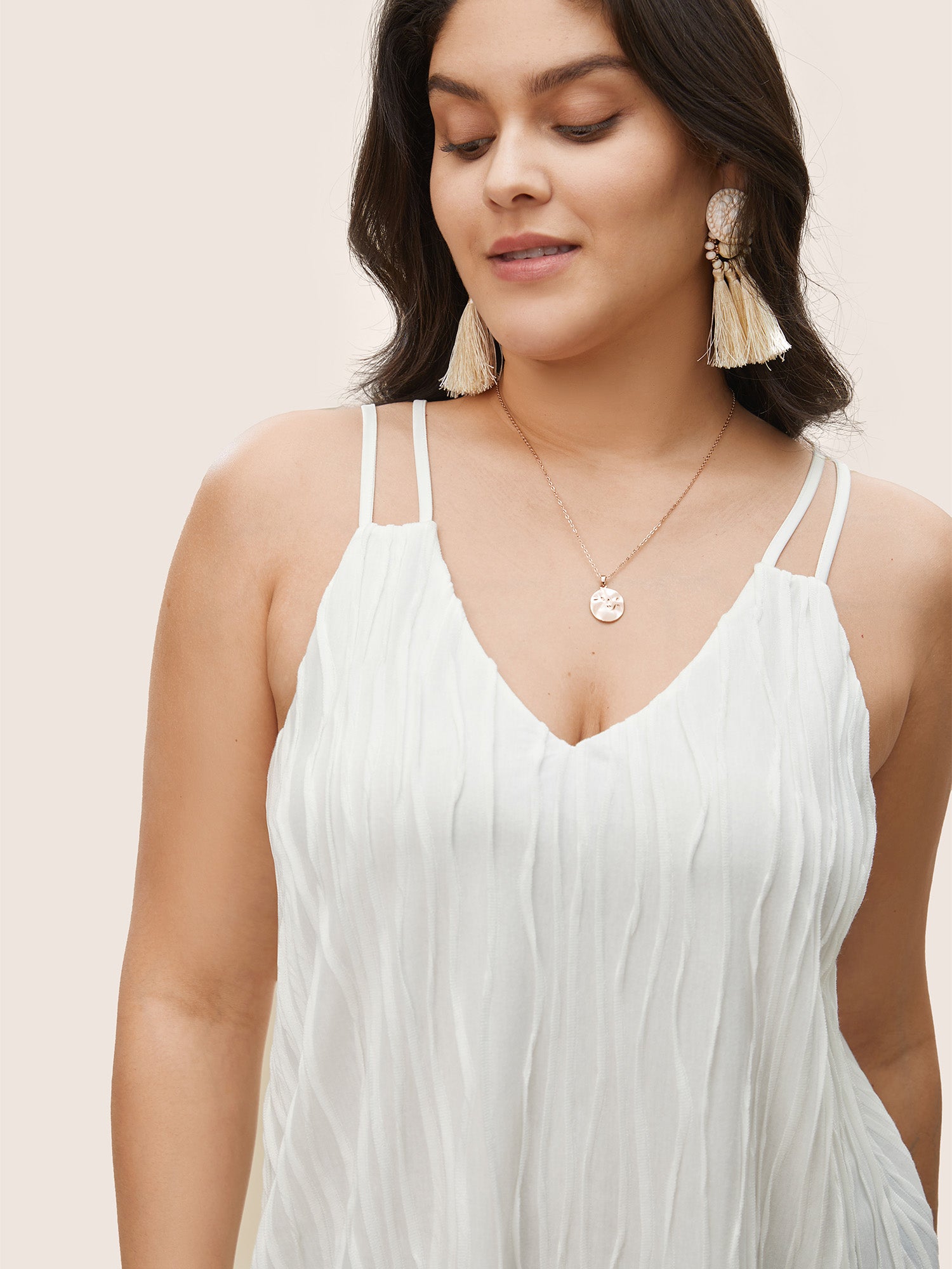Shop Plain Plisse Deep V Neck Cami Top now and redefine your style with confidence at Sweetccc. Tailored for mid and plus-size women. This trendy Tops Women. sizes 10-30. Color:White;Pattern Type:Plain;Neckline:V-neck;Sleeve Type:Sleeveless;Pocket:No-pocket