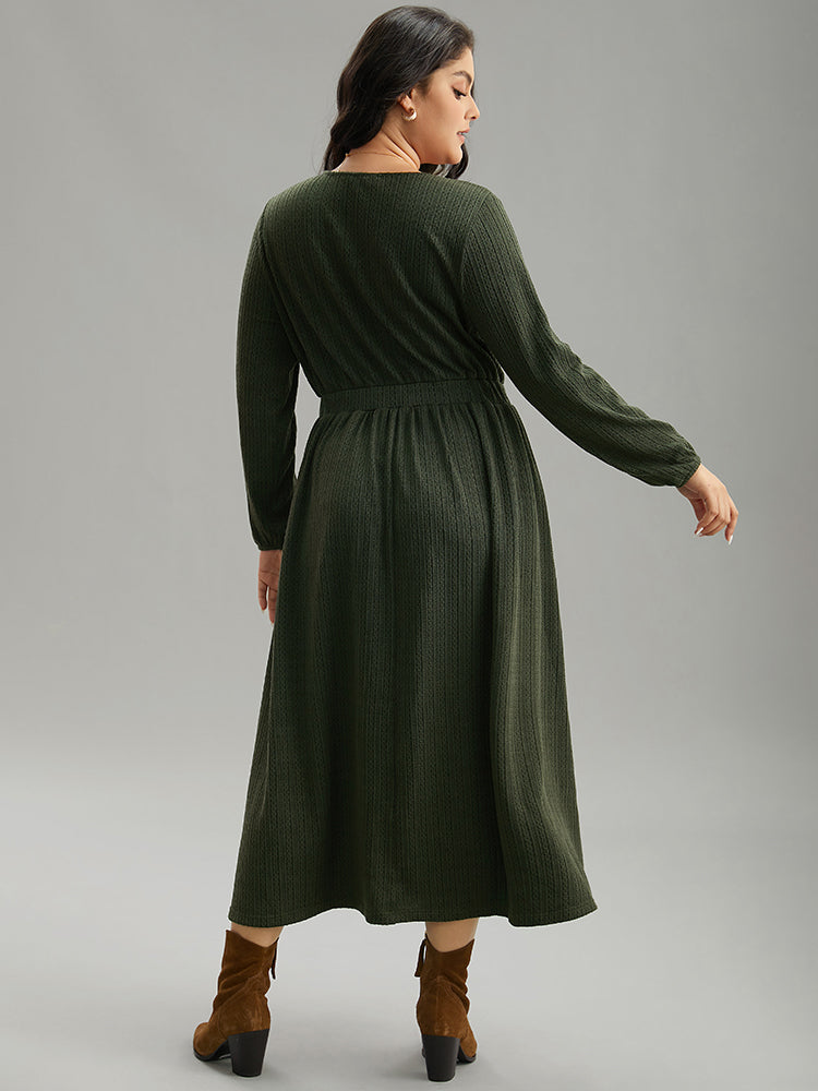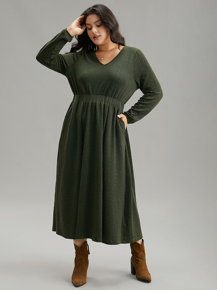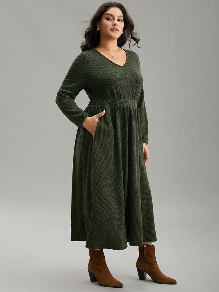 Shop Plain Plisse Elastic Cuffs Midi Dress now and redefine your style with confidence at Sweetccc. Tailored for mid and plus-size women. This trendy Dress. sizes 10-30. You can never go wrong with Sweetccc Dresses. Season:Winter;Color:ArmyGreen;Style:Elegant;Neckline:V-neck;Sleeve Type:Lantern Sleeve;Pattern Type:Plain;Details:Pocket. Elastic Waist. Plain. Elastic cuffs;Pocket:It is perfectly sized to carry a phone.;Belt:No-belt