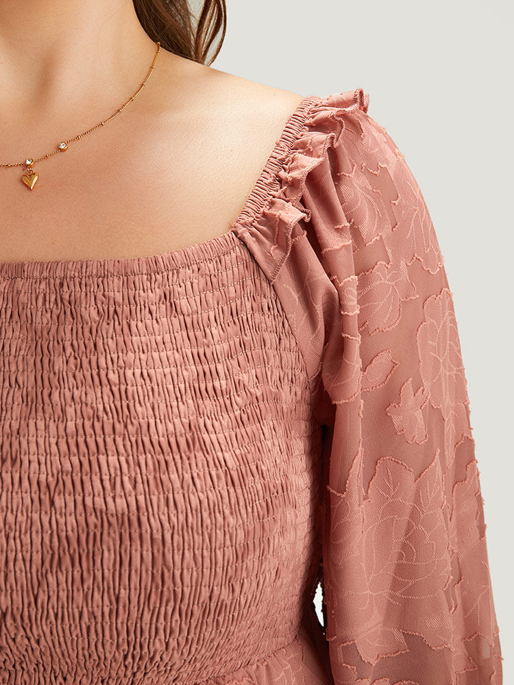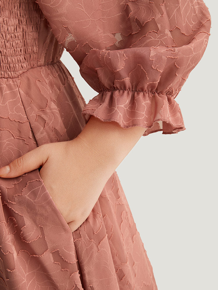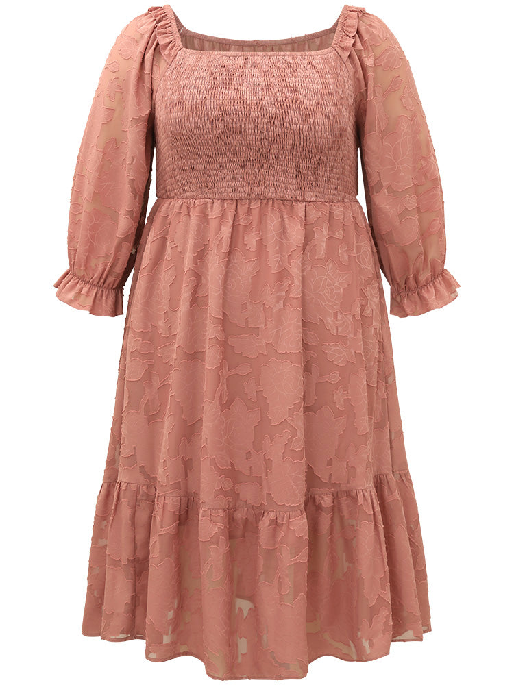 Shop Plain Pocket Frill Trim Lantern Sleeve Dress now and redefine your style with confidence at Sweetccc. Tailored for mid and plus-size women. This trendy Dress. sizes 10-30. You can never go wrong with Sweetccc Dresses. Season:Fall;Color:Watermelon;Style:Elegant;Neckline:Square Neck;Sleeve Type:Lantern Sleeve;Pattern Type:Plain;Details:Shirred. Pocket. Elastic Waist. Pleated. Frill Trim. Plain. See through. Elastic cuffs. Lined;Pocket:It is perfectly sized to carry a phone.;Belt:No-belt