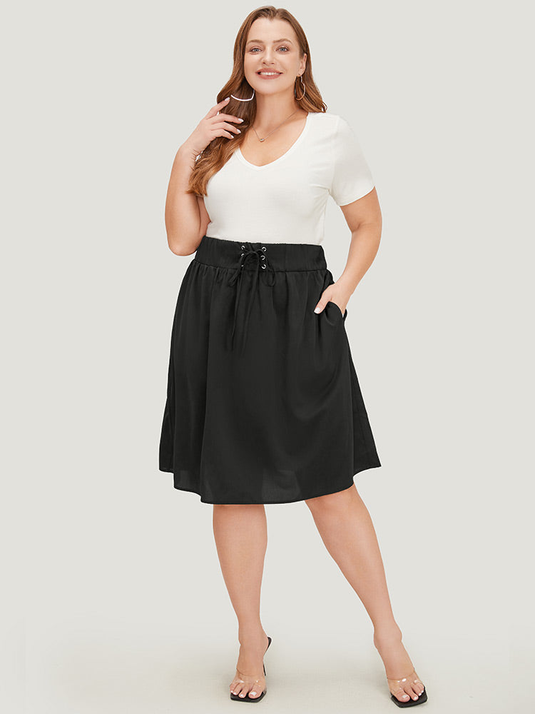 Shop Plain Pocket Lace Up Skirt now and redefine your style with confidence at Sweetccc. Tailored for mid and plus-size women. This trendy Bottoms Women. sizes 10-30. Season:Summer;Color:Black;Style:Casual;Pattern Type:Plain;Details:Cross straps. Plain;Pocket:No-pocket;Belt:No-belt;Closure Type:Elastic Waist