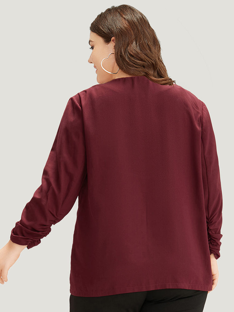 Shop Plain Pocket Open Front Gathered Blazer now and redefine your style with confidence at Sweetccc. Tailored for mid and plus-size women. This trendy Outerwear Women. sizes 10-30. Season:Fall;Color:Scarlet;Style:Office;Neckline:Open Front;Sleeve Type:Regular Sleeve;Pattern Type:Plain;Details:Pocket. Plain. Elastic cuffs. Gathered;Pocket:It is perfectly sized to carry a phone.;Belt:No-belt;Lining:No-lining