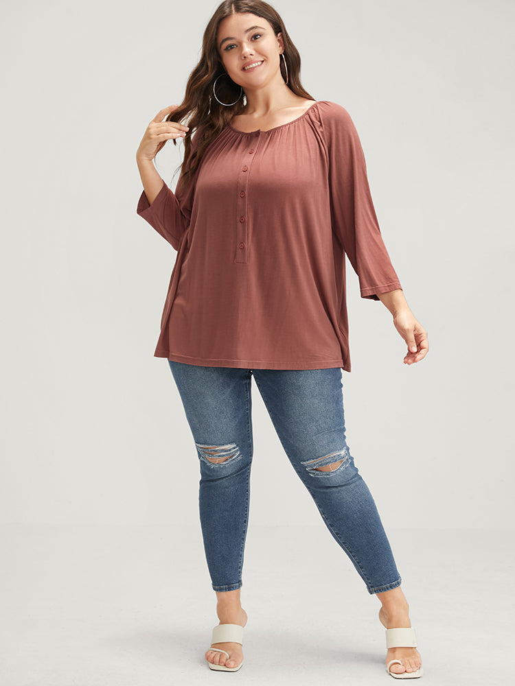 Shop Plain Round Neck Button Modal T-shirt now and redefine your style with confidence at Sweetccc. Tailored for mid and plus-size women. This trendy Tops Women. sizes 10-30. Season:Fall;Color:Rouge;Neckline:Round Neck;Sleeve Type:Regular Sleeve;Details:Button;Pocket:No-pocket;Snap Fastener:No-snap fastener