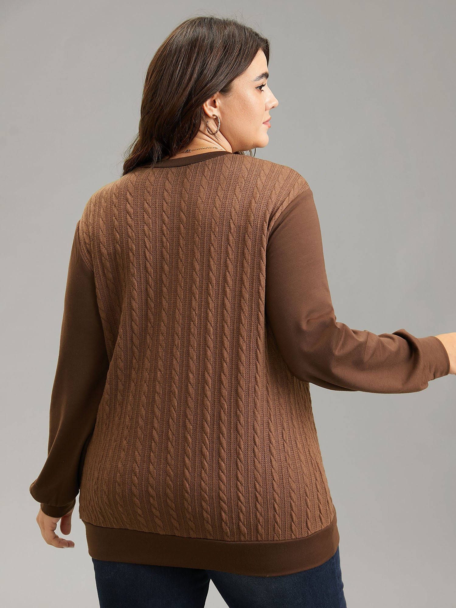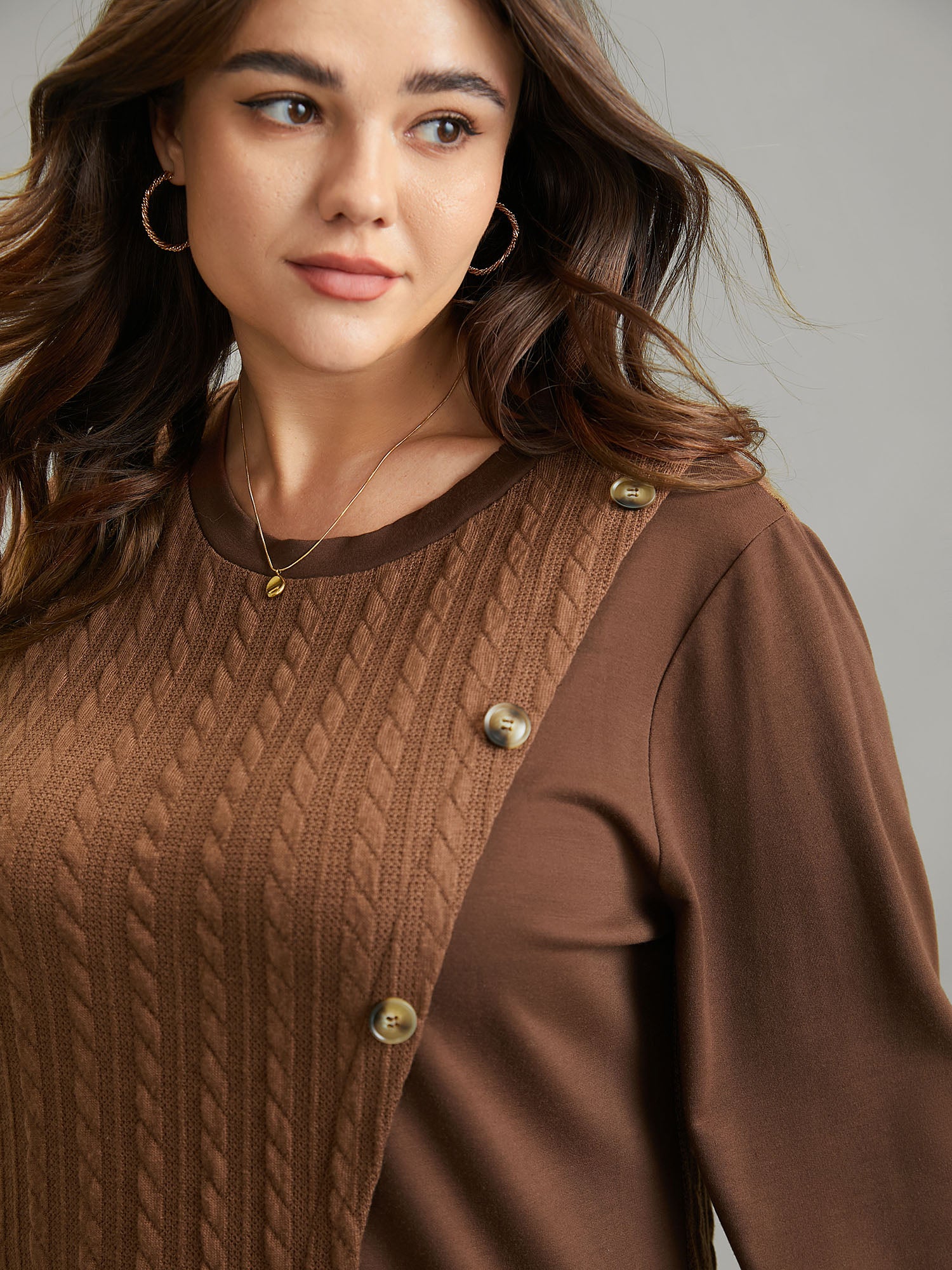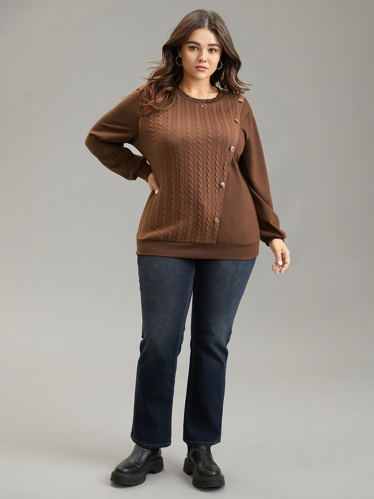 Shop Plain Textured Patchwork Button Detail Sweatshirt now and redefine your style with confidence at Sweetccc. Tailored for mid and plus-size women. This trendy Tops Women. sizes 10-30. Season:Winter;Color:DarkBrown;Style:Casual;Neckline:Round Neck;Sleeve Type:Regular Sleeve;Pattern Type:Plain;Details:Button. Texture. Patchwork;Pocket:No-pocket;Belt:No-belt