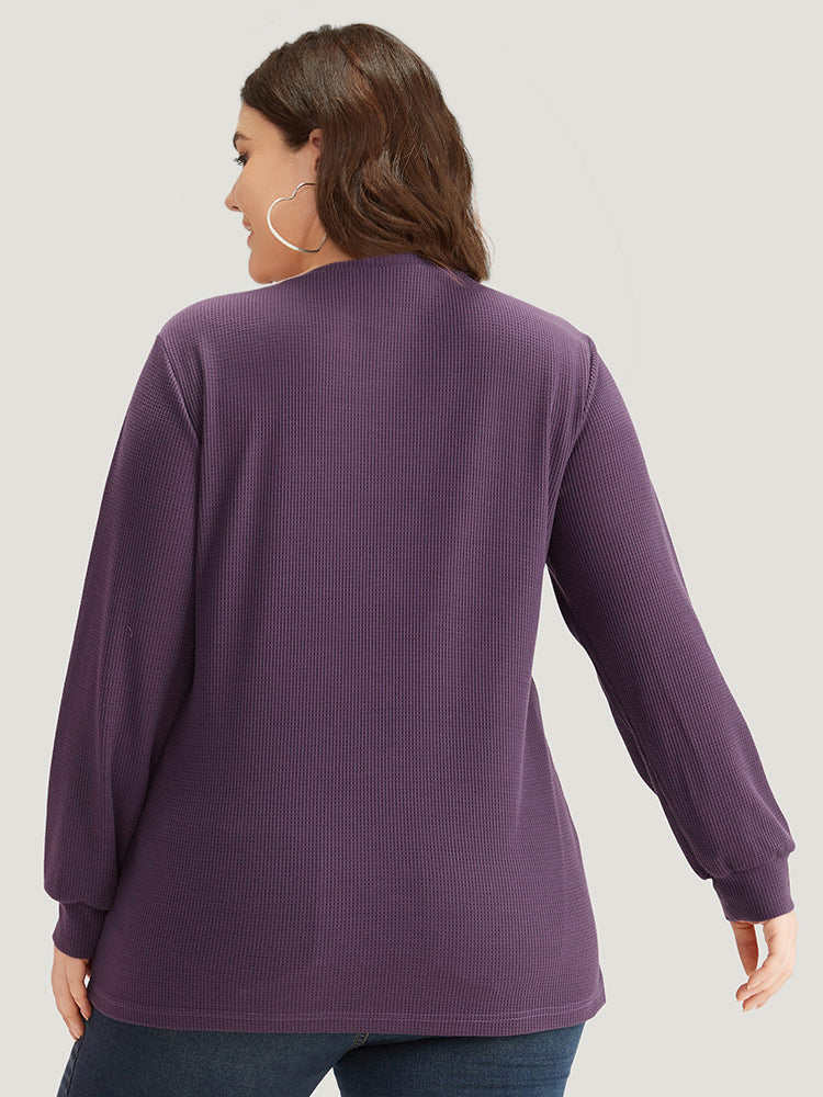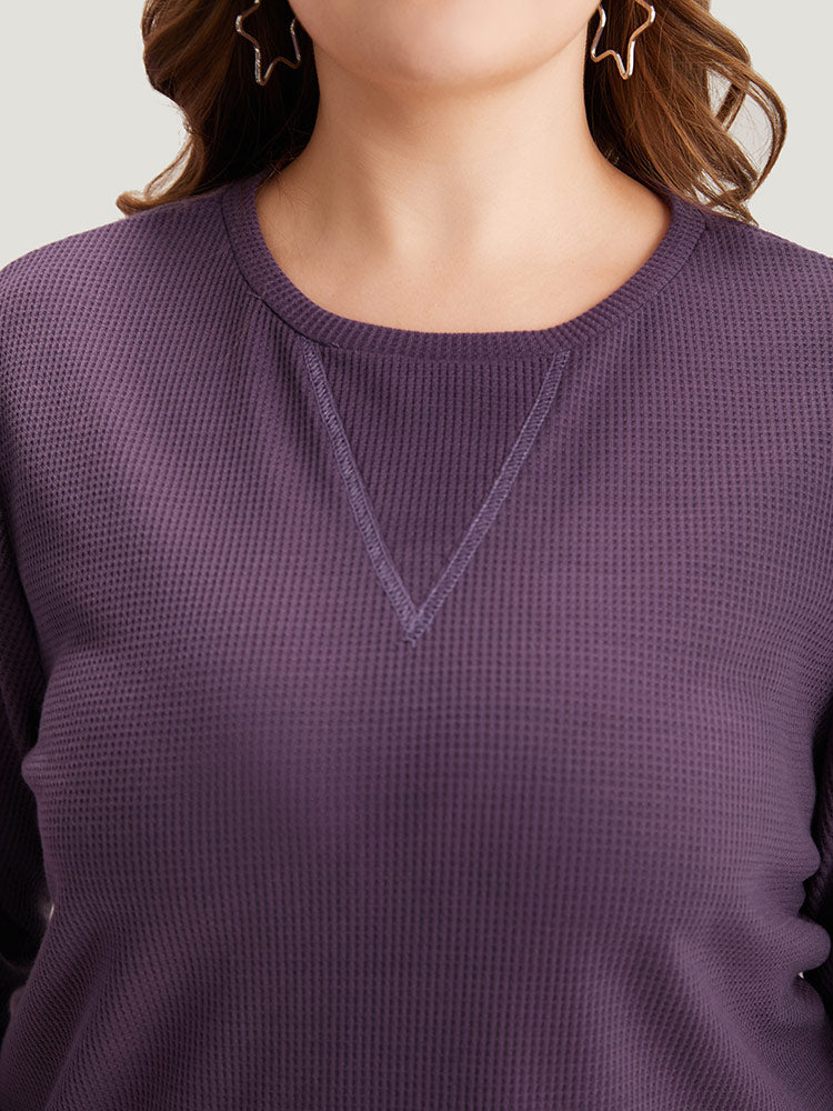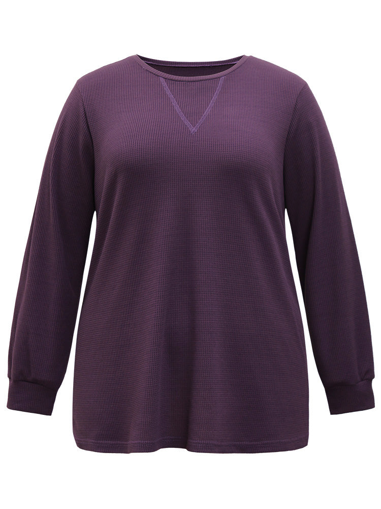 Shop Plain Textured Stitch Crew Neck Sweatshirt now and redefine your style with confidence at Sweetccc. Tailored for mid and plus-size women. This trendy Tops Women. sizes 10-30. Color:Eggplant;Style:Casual;Neckline:Round Neck;Sleeve Type:Regular Sleeve;Pattern Type:Plain;Details:Plain. Texture. Elastic cuffs;Pocket:No-pocket;Belt:No-belt