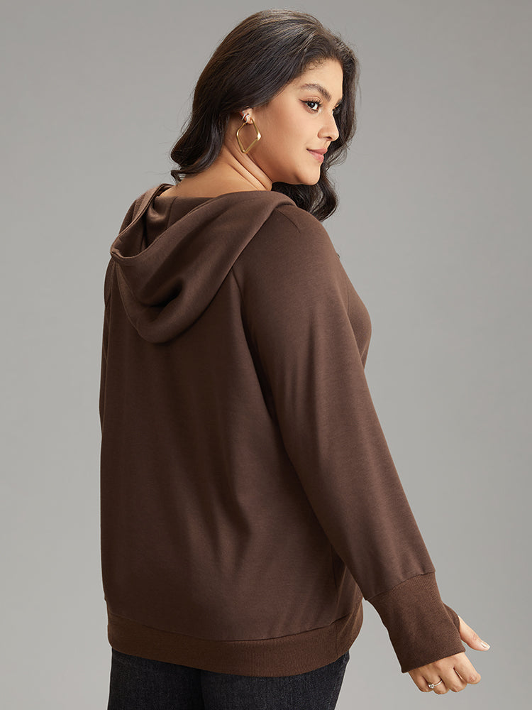 Shop Plain Thumb Hole Hooded Kangaroo Pocket Sweatshirt now and redefine your style with confidence at Sweetccc. Tailored for mid and plus-size women. This trendy Tops Women. sizes 10-30. Season:Winter;Color:DarkBrown;Style:Casual;Neckline:Hooded;Sleeve Type:Raglan sleeve;Pattern Type:Plain;Details:Pocket. Zipper. Plain;Pocket:No-pocket;Belt:No-belt