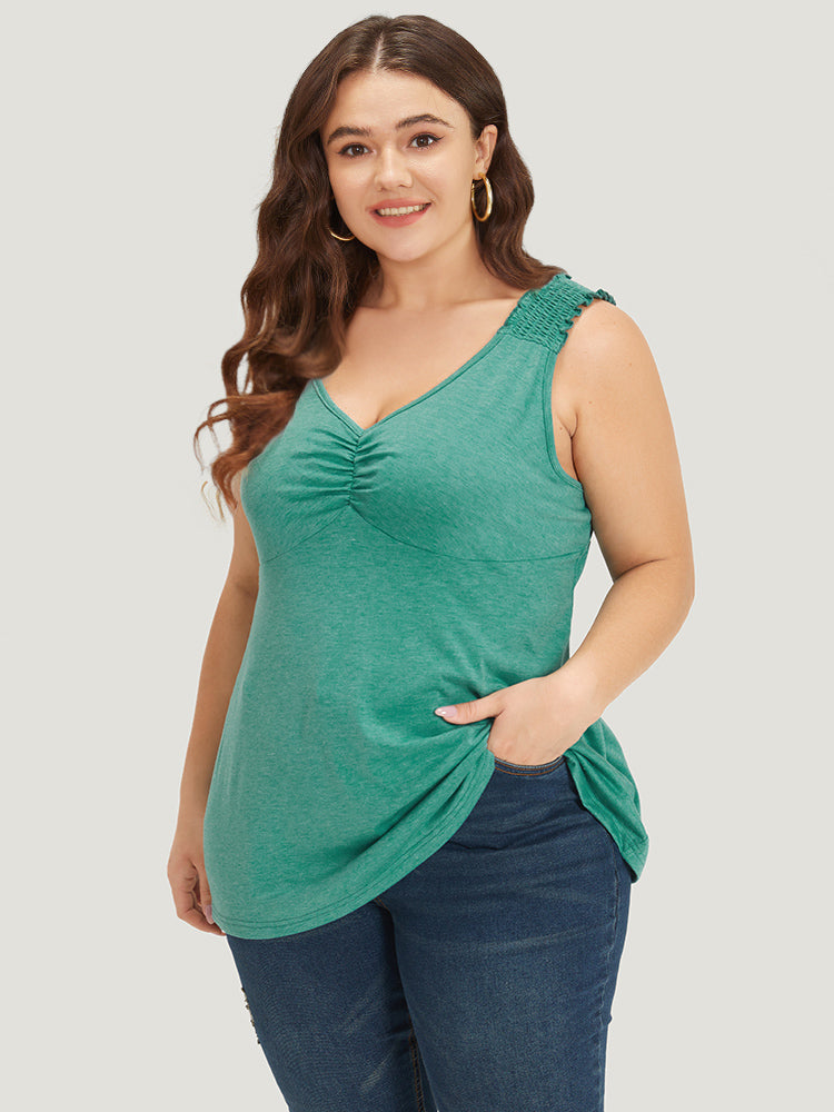 Shop Plain V Neck Ruched Shirred Tank Top now and redefine your style with confidence at Sweetccc. Tailored for mid and plus-size women. This trendy Tops Women. sizes 10-30. Season:Summer;Color:Emerald;Style:Elegant;Pattern Type:Plain;Neckline:V-neck;Sleeve Type:Sleeveless;Details:Shirred. Plain;Pocket:No-pocket