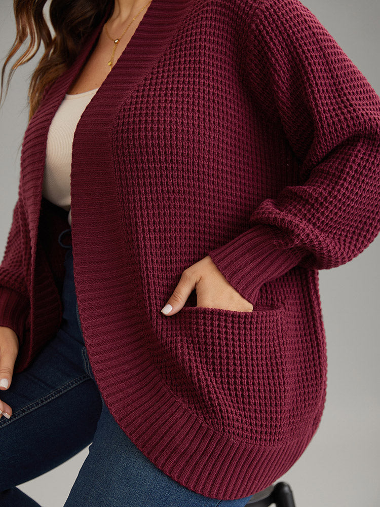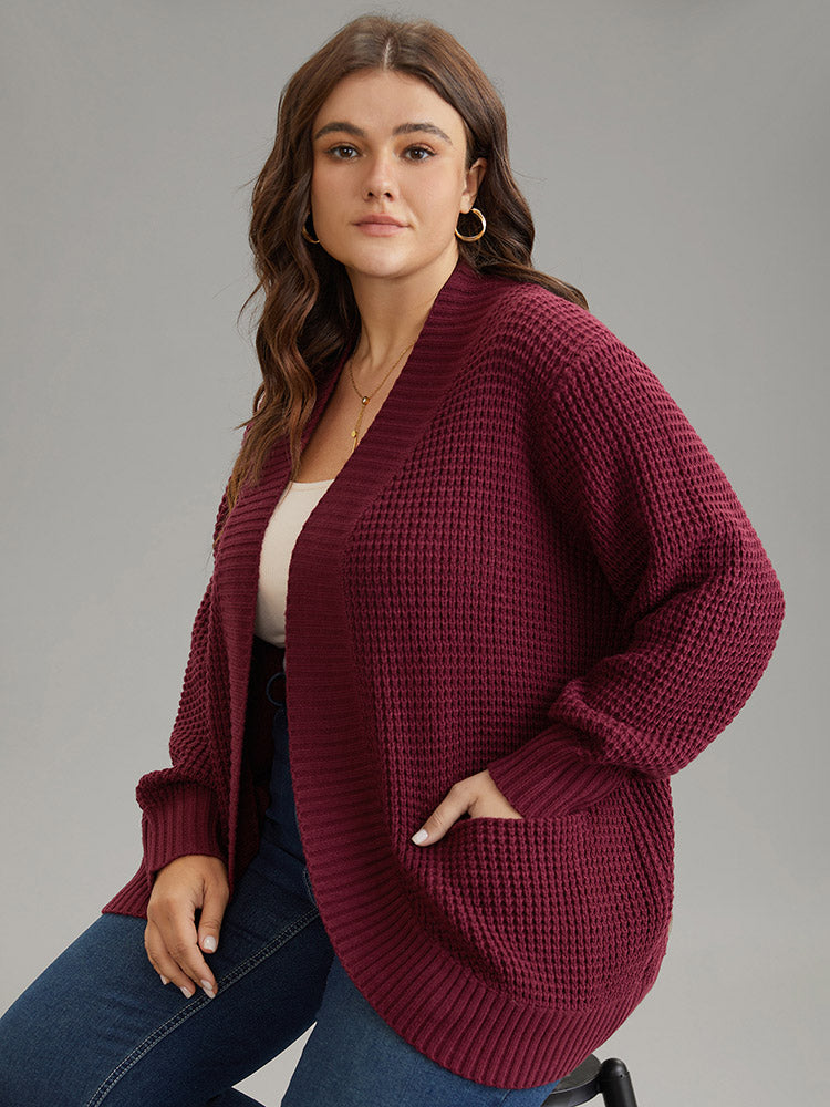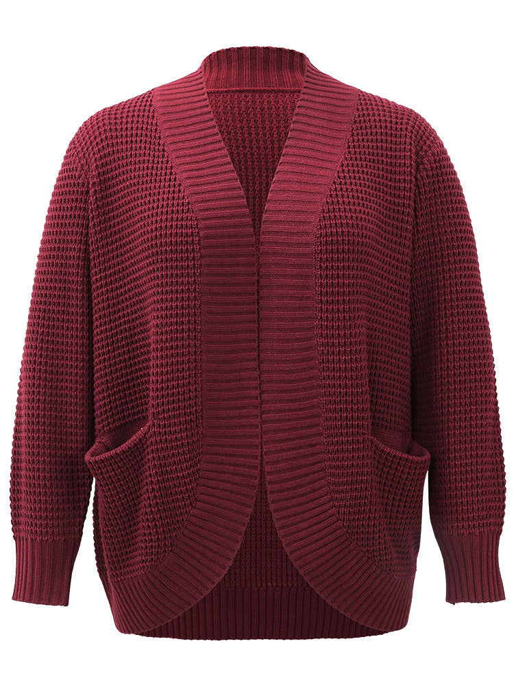 Shop Plisse Patched Pocket Curved Hem Open Front Cardigan now and redefine your style with confidence at Sweetccc. Tailored for mid and plus-size women. This trendy Sweaters Cardigans Women. sizes 10-30. Season:Winter;Color:Burgundy;Neckline:Open Front;Sleeve Type:Regular Sleeve;Pattern Type:Plain;Details:Plain. Arc Hem. Pocket. Texture. Elastic cuffs;Pocket:It is perfectly sized to carry a phone.;Belt:No-belt
