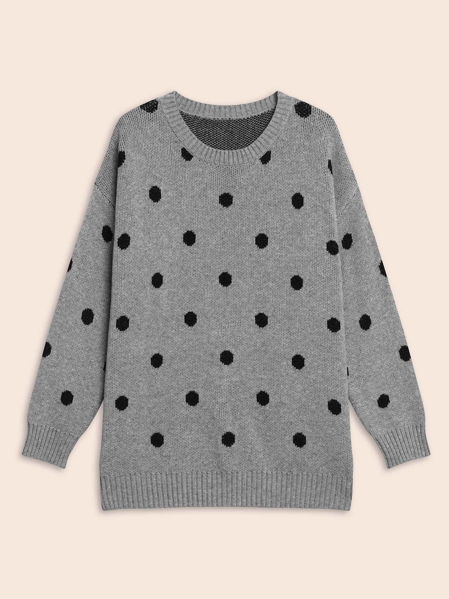 Shop Polka Dot Drop Shoulder Sleeve Pullover now and redefine your style with confidence at Sweetccc. Tailored for mid and plus-size women. This trendy Sweaters Cardigans Women. sizes 10-30. Color:Mediumgray.Black;Style:Casual;Neckline:Round Neck;Sleeve Type:Drop shoulder sleeve;Prints:Polka dots;Details:Slit;Pocket:No-pocket;Belt:No-belt;Closure Type:Non