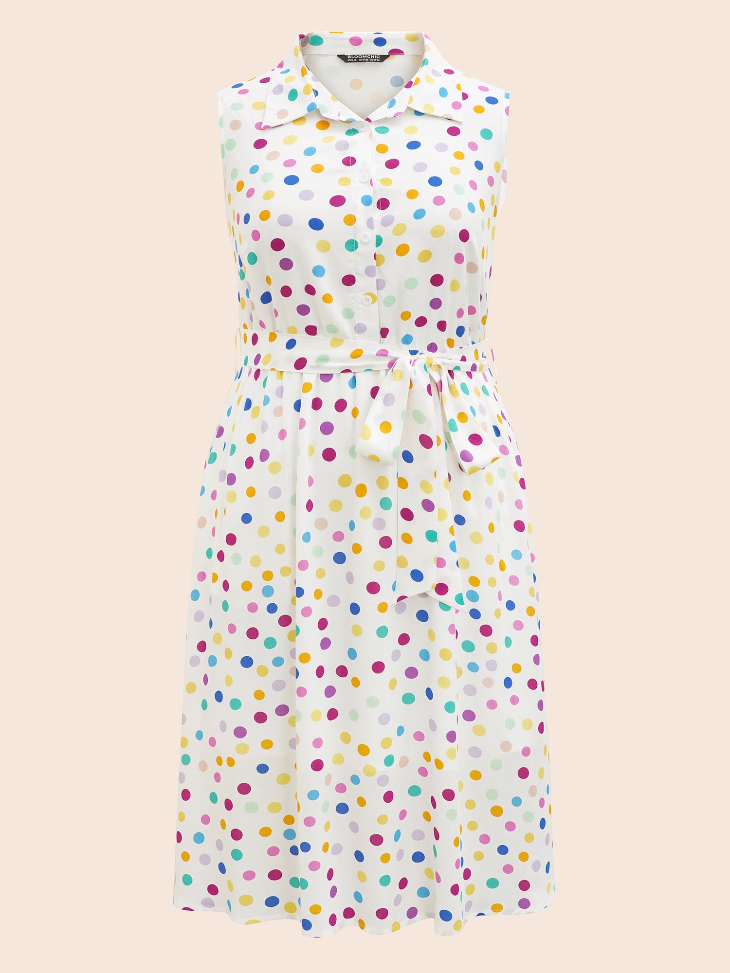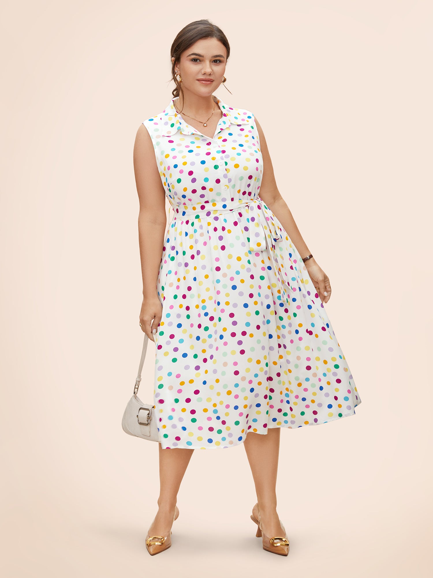 Shop Polka Dot Front Tie Midi Shirt Dress now and redefine your style with confidence at Sweetccc. Tailored for mid and plus-size women. This trendy Dress. sizes 10-30. You can never go wrong with Sweetccc Dresses. Color:WhiteSmoke;Style:Casual;Neckline:Shirt collar;Sleeve Type:Sleeveless;Prints:Polka dots;Details:Belted;Pocket:Side seam pocket;Belt:Belt;Closure Type:Open front with closure