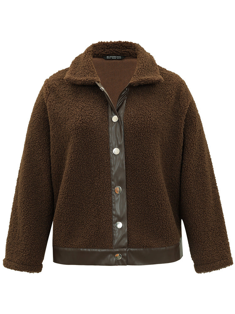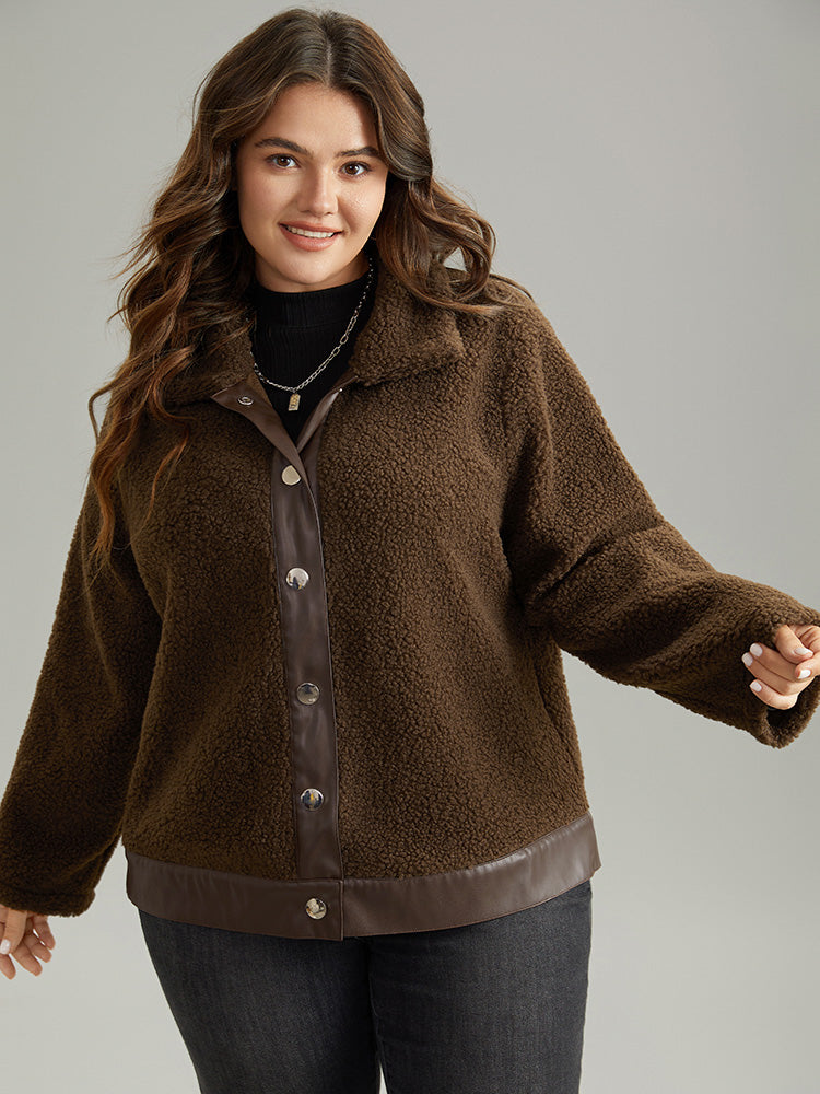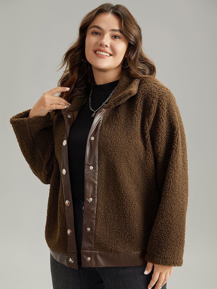 Shop PU Leather Patchwork Metal Detail Teddy Jacket now and redefine your style with confidence at Sweetccc. Tailored for mid and plus-size women. This trendy Outerwear Women. sizes 10-30. Season:Winter;Color:DarkBrown;Style:Casual;Pattern Type:Plain;Details:Button. Patchwork;Pocket:No-pocket;Belt:No-belt;Closure Type:Button;Lining:No-lining