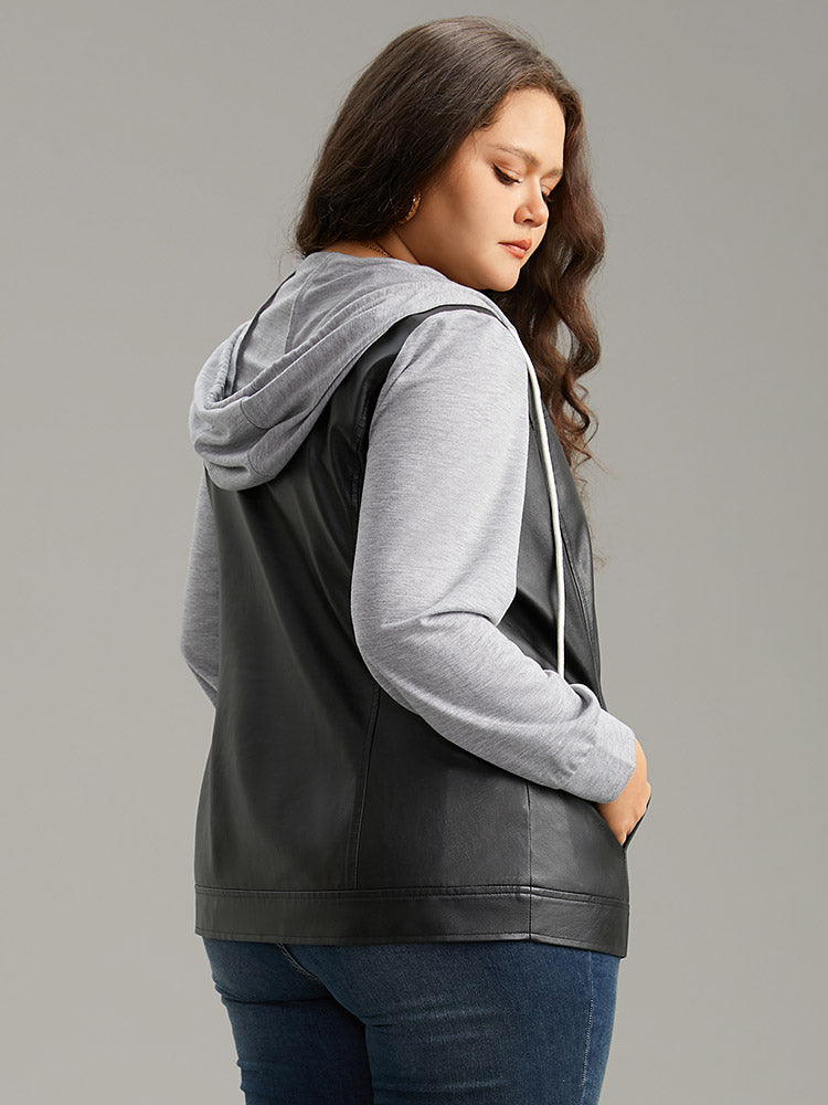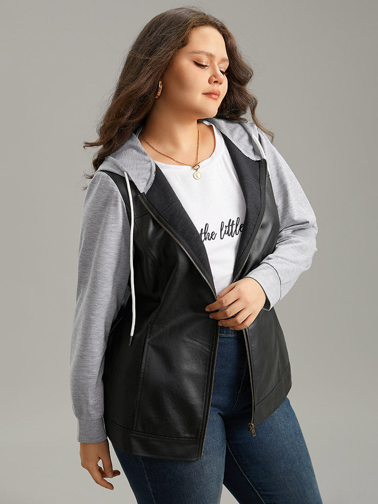 Shop PU Leather Zipper Hooded Drawstring Jacket now and redefine your style with confidence at Sweetccc. Tailored for mid and plus-size women. This trendy Outerwear Women. sizes 10-30. Season:Winter;Color:Black;Pattern Type:Plain;Details:Pocket. Drawstring. Patchwork. Zipper. Contrast;Pocket:It is perfectly sized to carry a phone.;Belt:No-belt;Closure Type:Zipper;Lining:No-lining