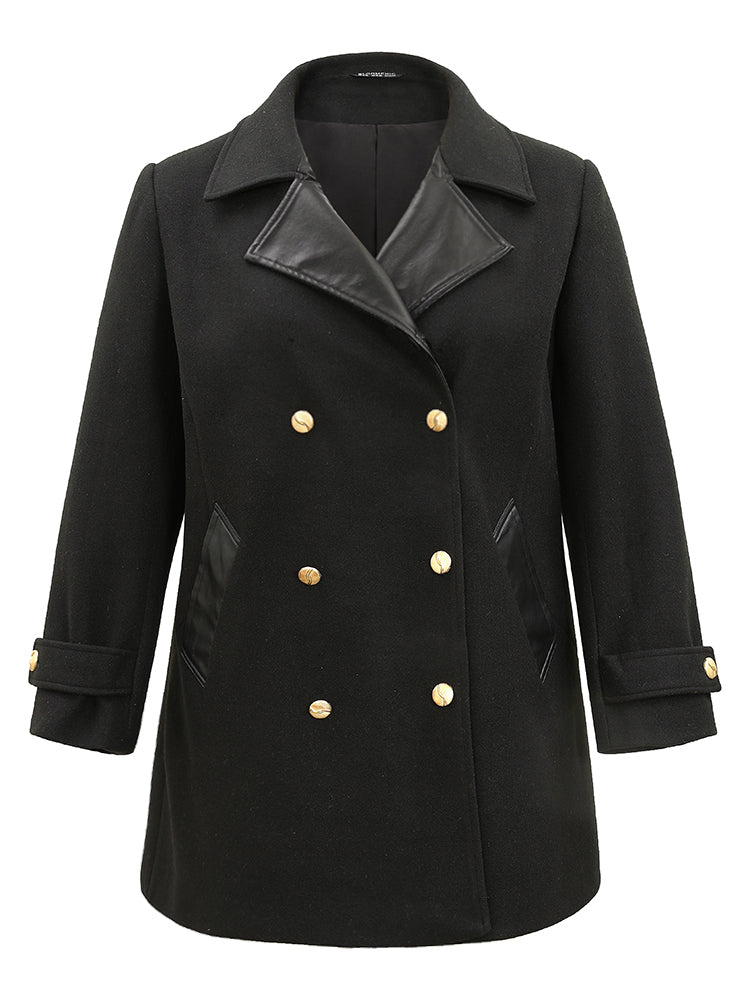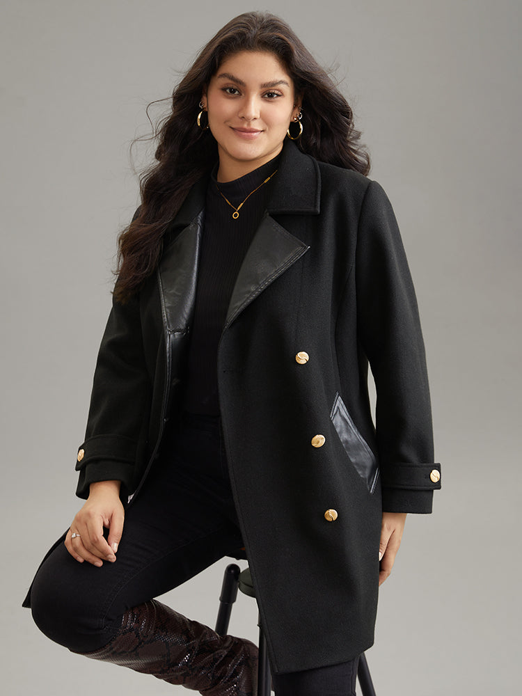 Shop PU Patchwork Pocket Double Breasted Jacket now and redefine your style with confidence at Sweetccc. Tailored for mid and plus-size women. This trendy Outerwear Women. sizes 10-30. Season:Winter;Color:Black;Style:Casual;Pattern Type:Plain;Details:Pocket. Patchwork. Lined;Pocket:It is perfectly sized to carry a phone.;Belt:No-belt;Lining:Lining