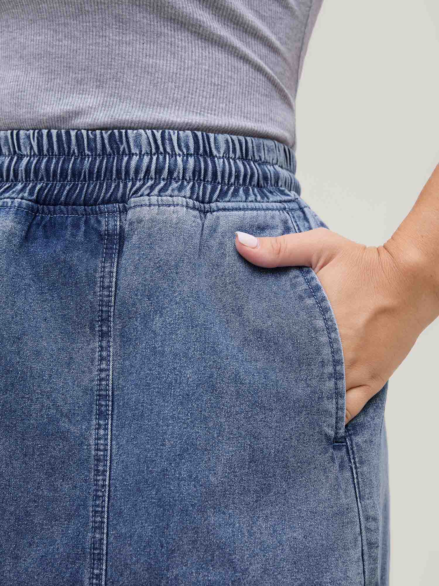 Shop Pull-On Drawstring Denim Skort now and redefine your style with confidence at Sweetccc. Tailored for mid and plus-size women. This trendy Denim Women. sizes 10-30. Color:Midblue;Prints:Non;Pocket:Slanted pocket;Belt:No-belt;Closure Type:Non;Wash:Medium Wash