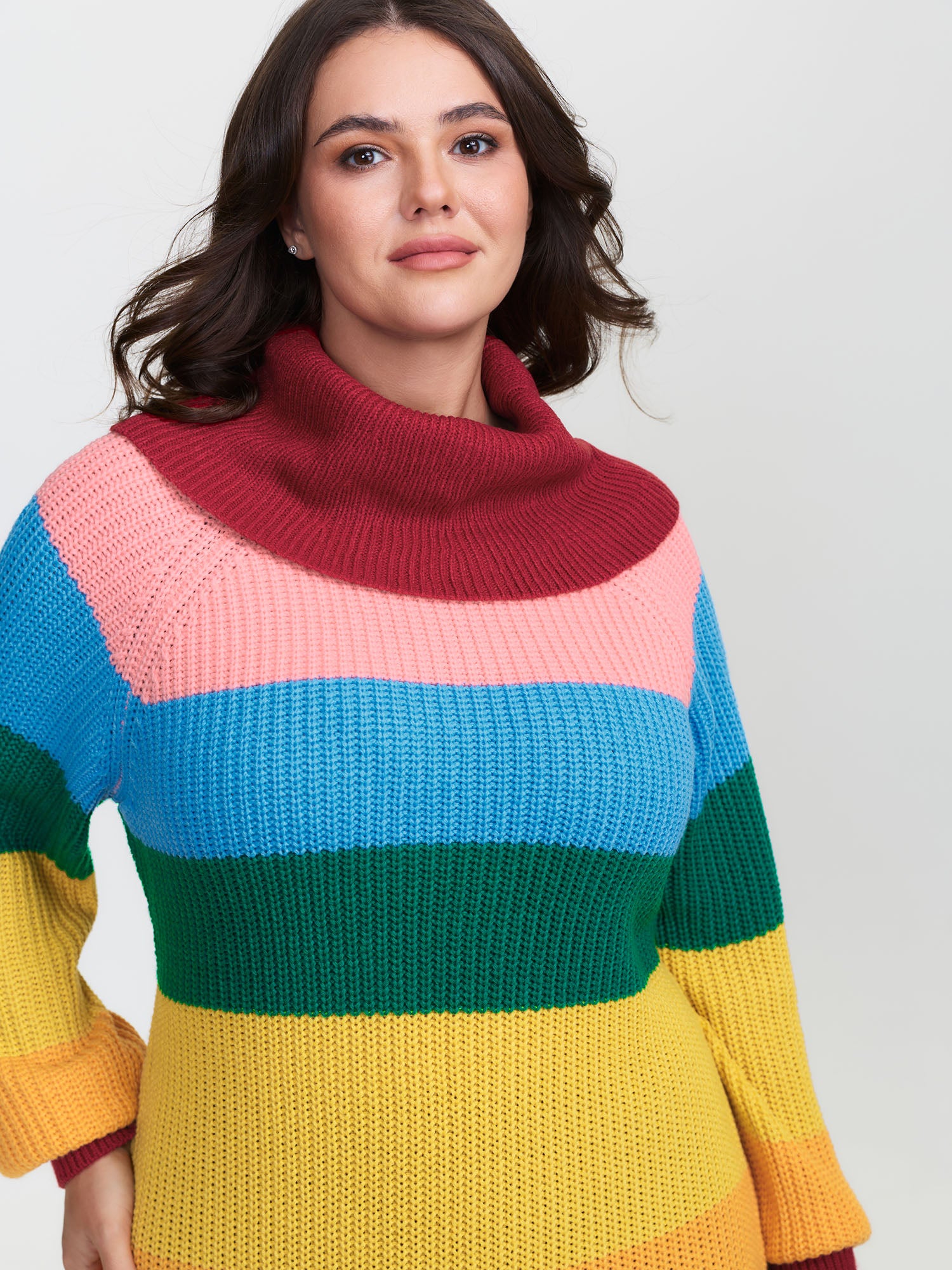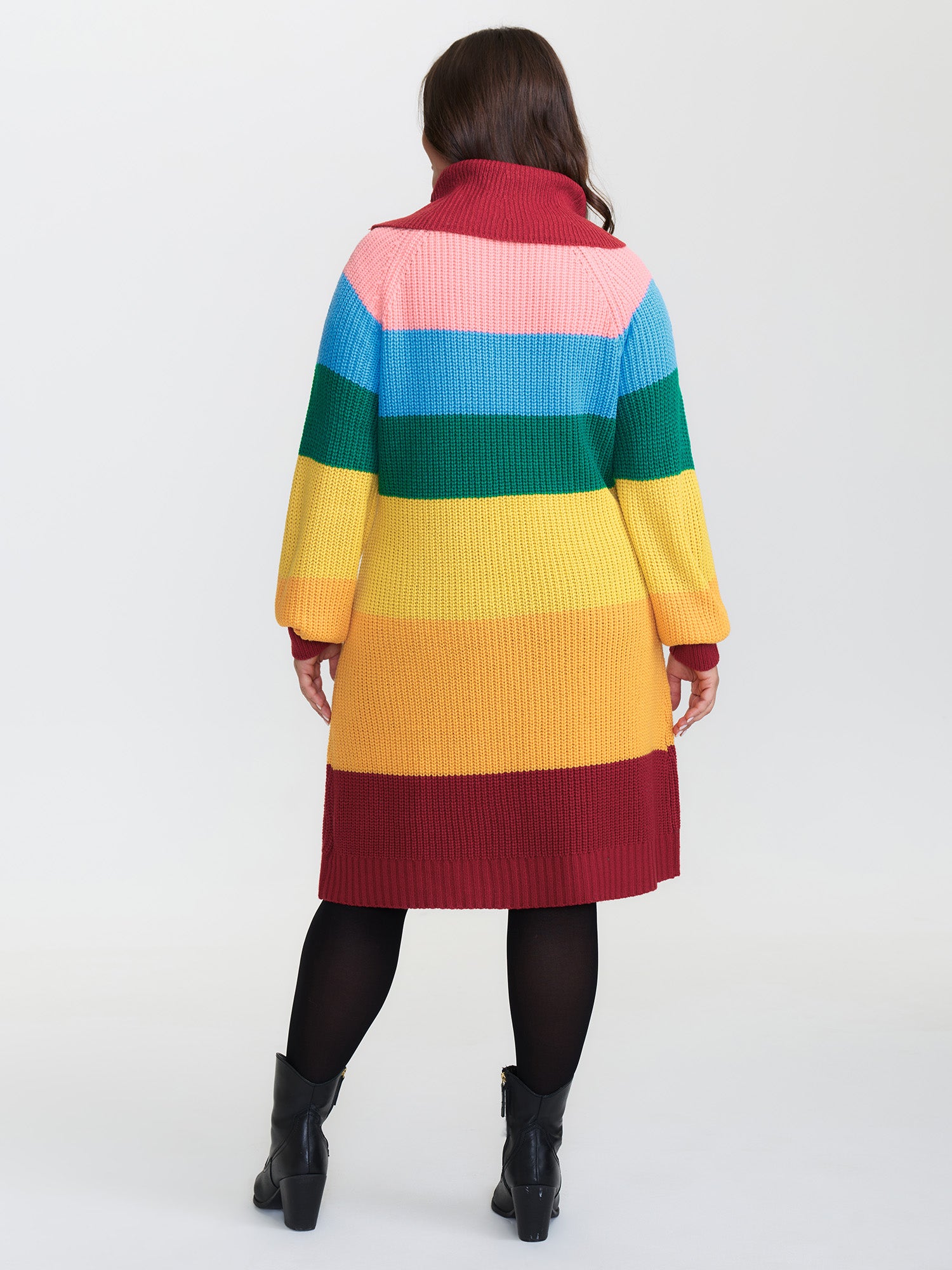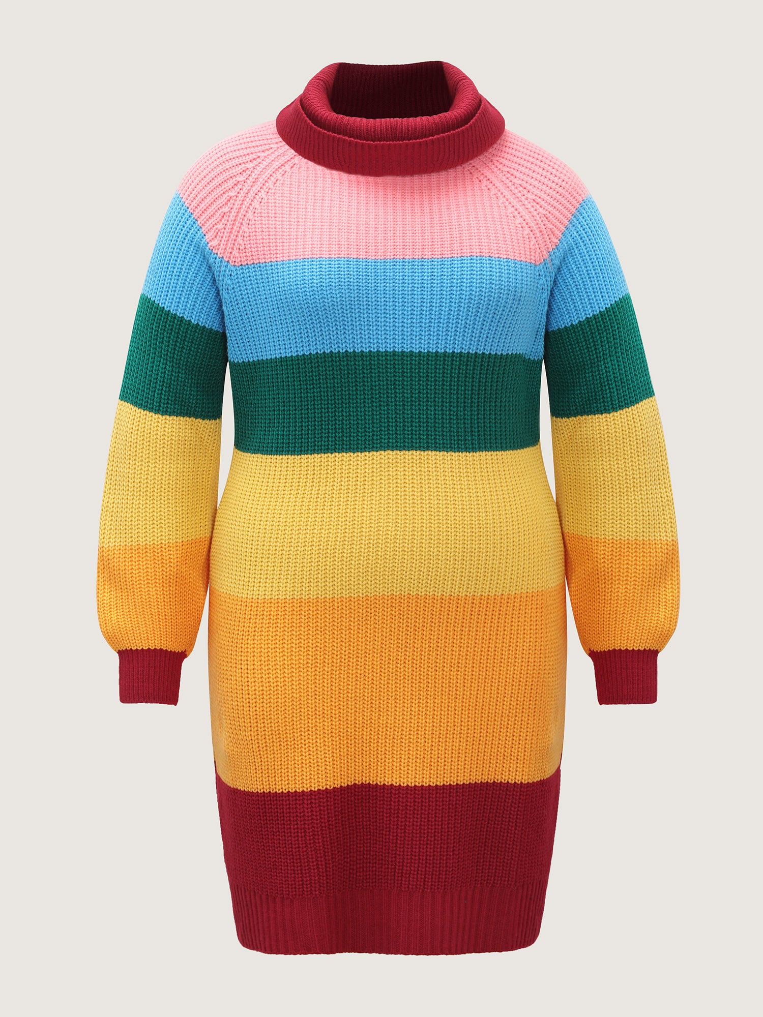 Shop Rainbow Stripe Turtleneck Midi Sweater Dress now and redefine your style with confidence at Sweetccc. Tailored for mid and plus-size women. This trendy Dresses Women. sizes 10-30. Color:Multicolor;Style:Playful;Neckline:Turtleneck;Sleeve Type:Raglan sleeve;Prints:Geometric & color block;Details:Contrast;Pocket:No-pocket;Belt:No-belt;Closure Type:Non