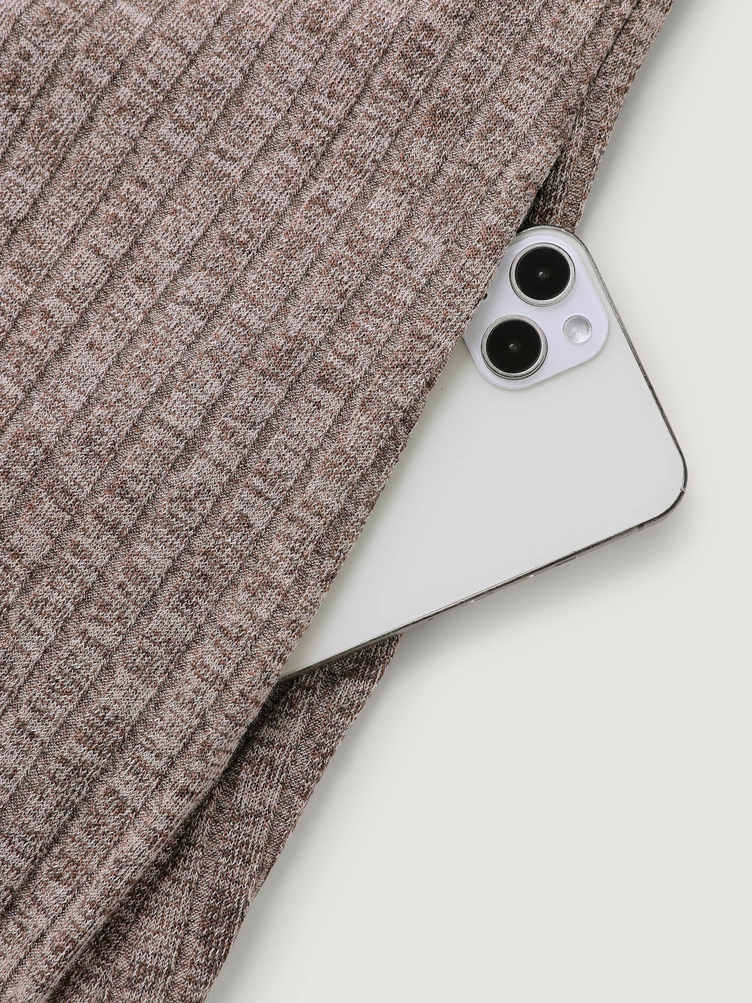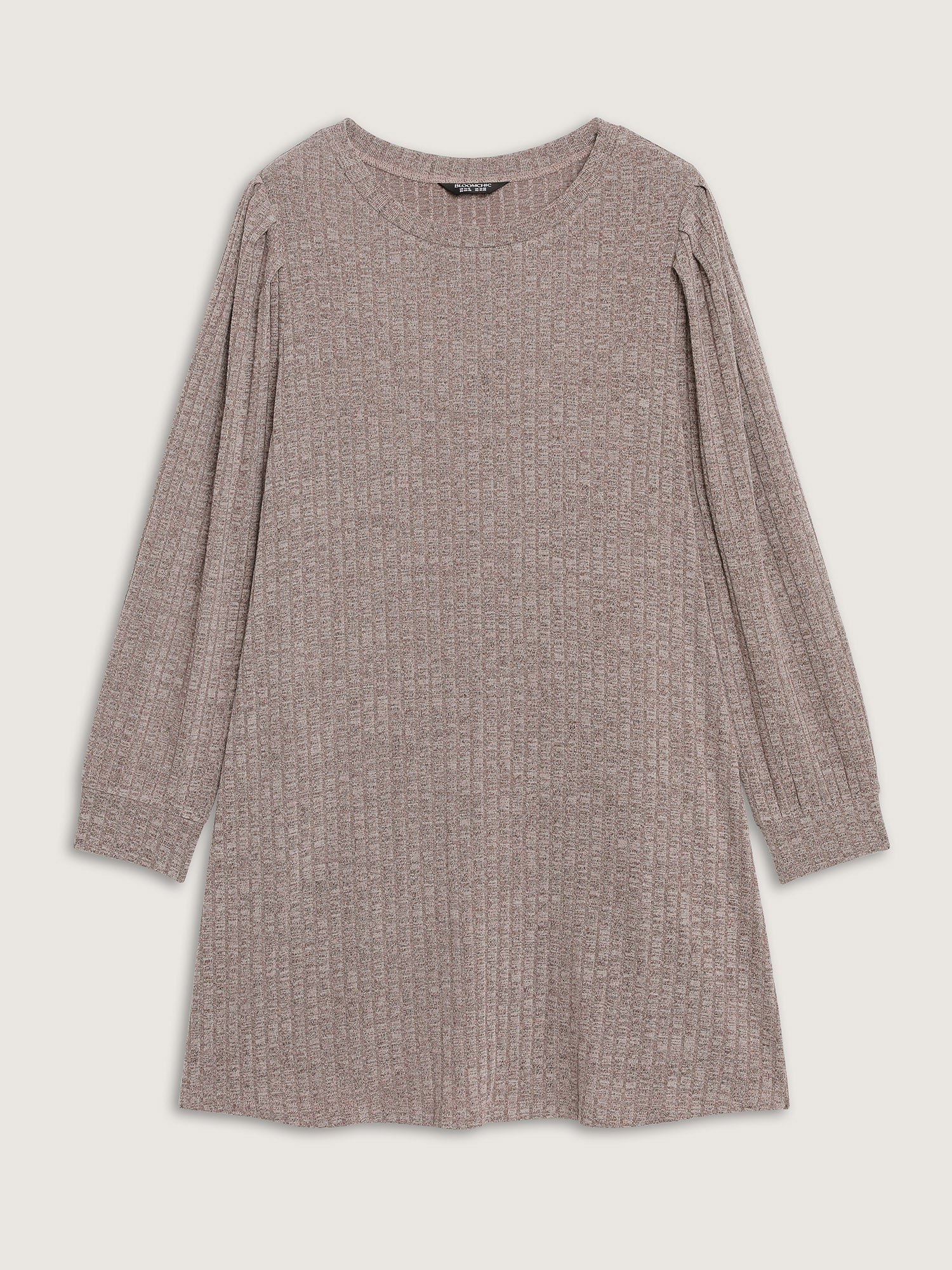 Ribbed Puffy Sleeve Knee-Length Sweater Dress