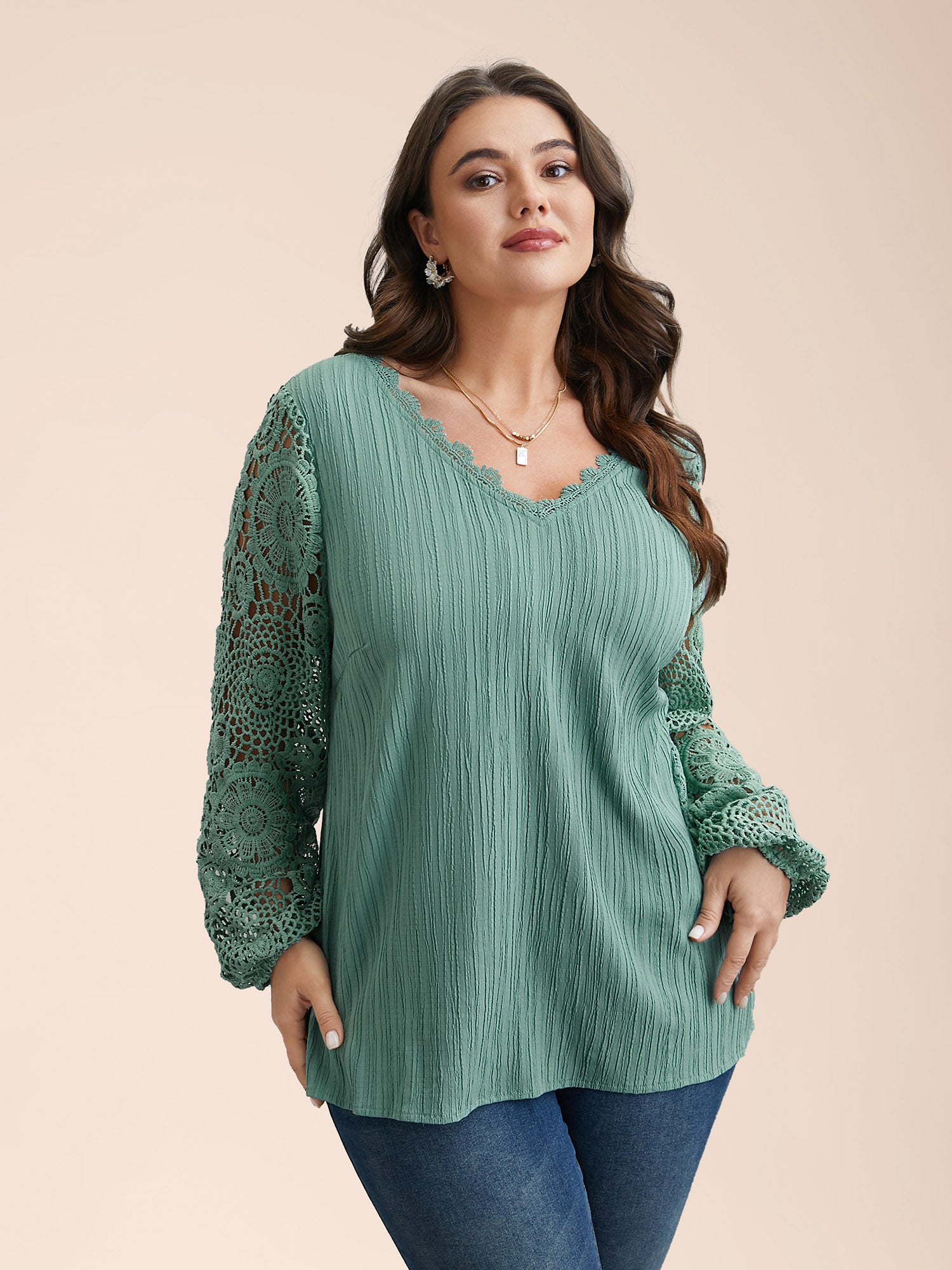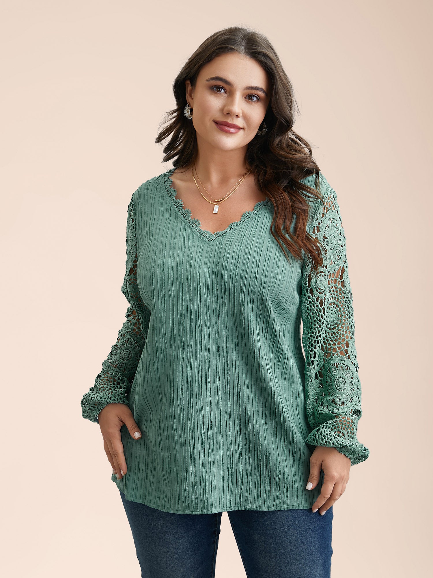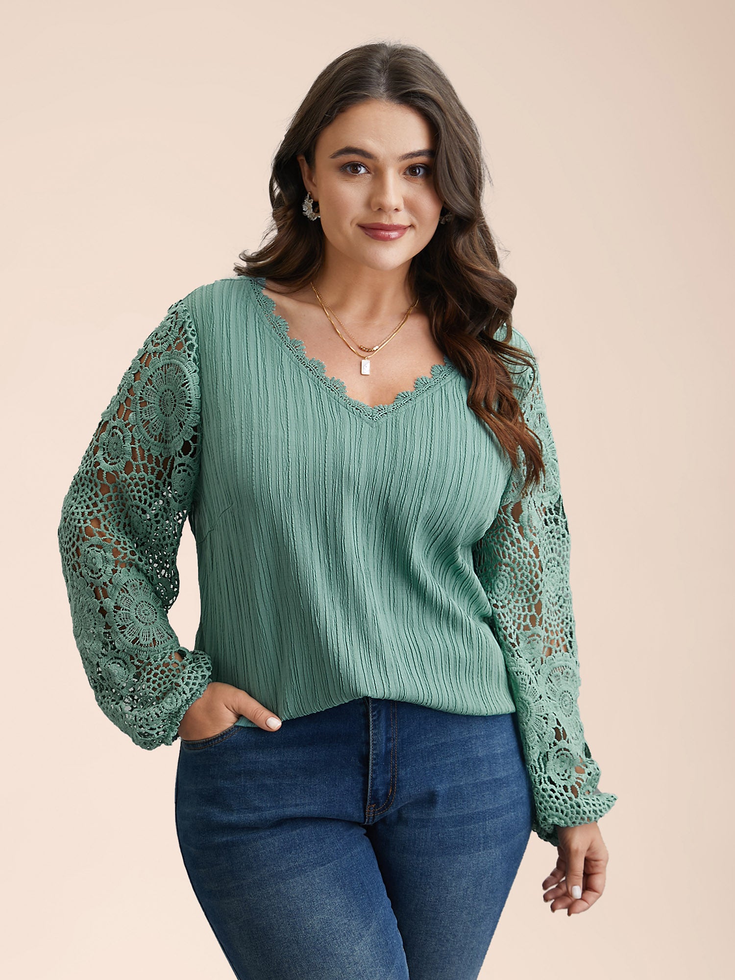 Shop Scalloped Lace Textured Sheer Sleeve Blouse at Sweetccc. Plus Size Clothing & Plus Size Blouses. Sweetccc is a digital-first fashion and lifestyle destination for modern women sizes 10-30.