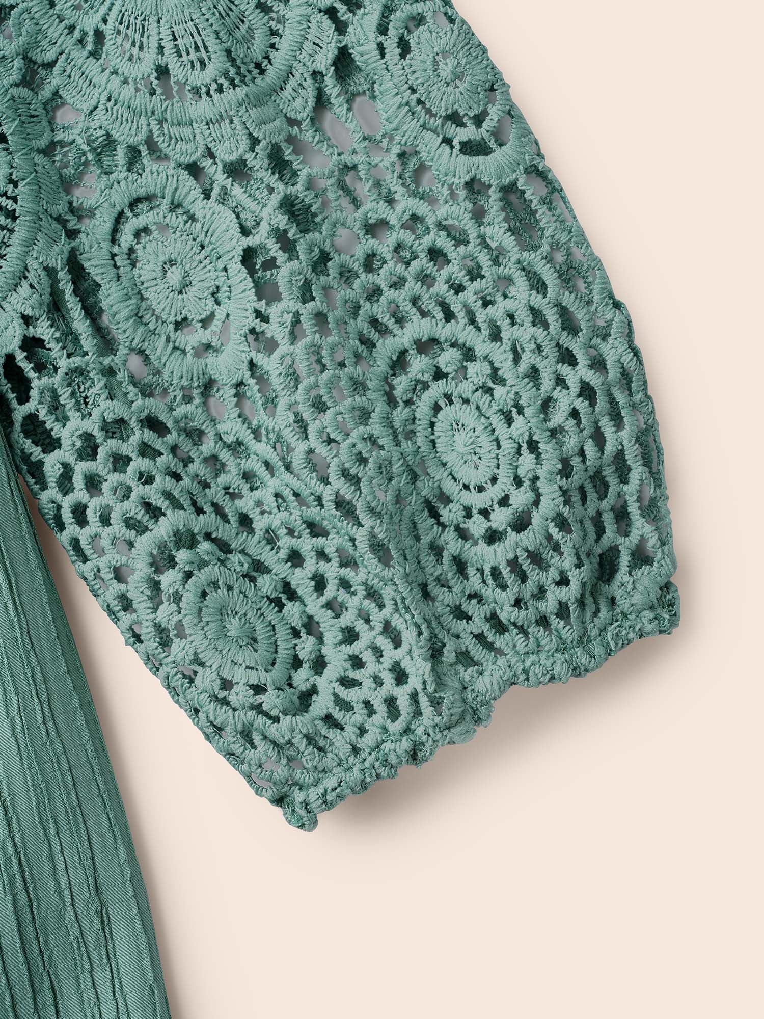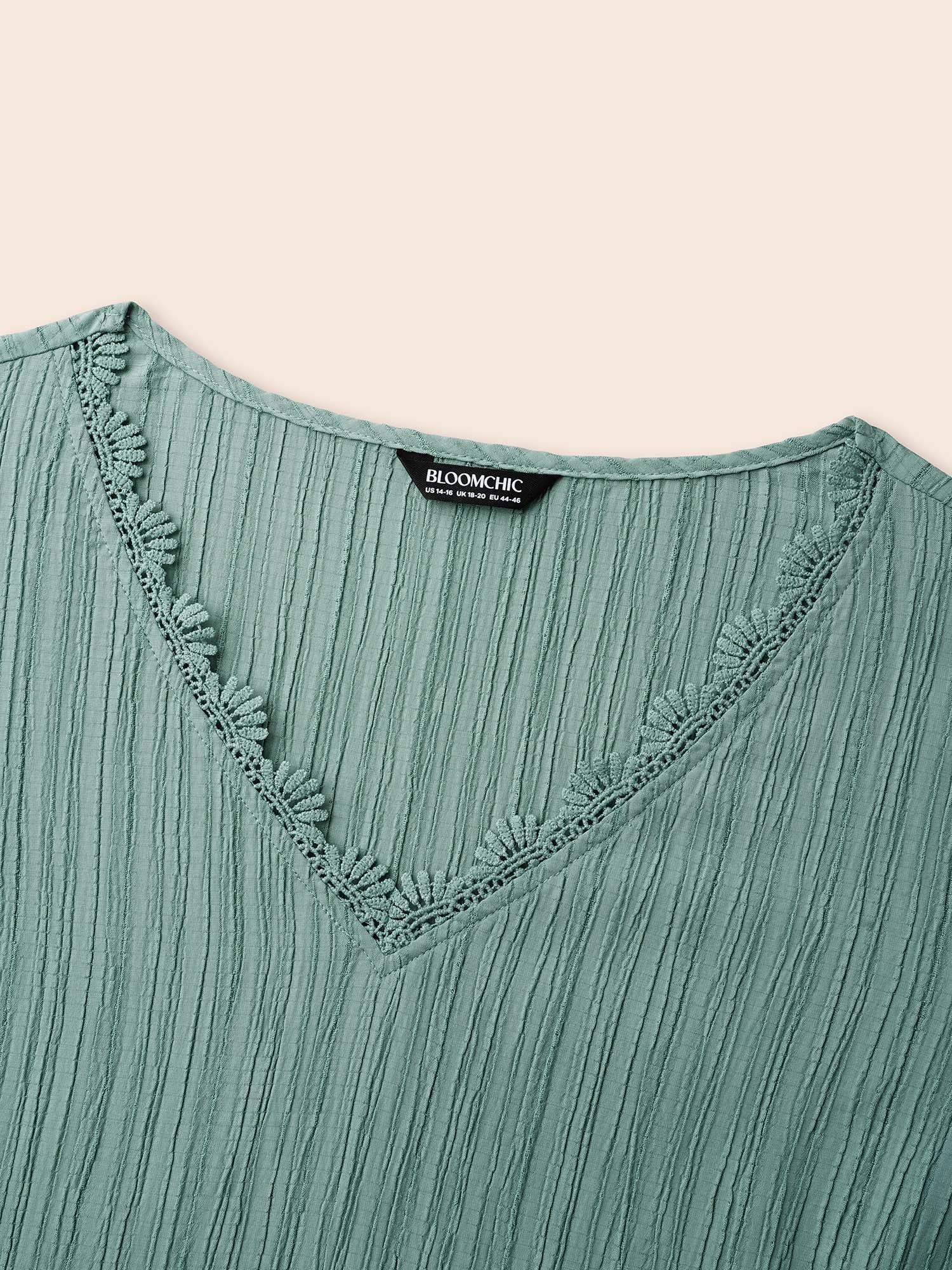Scalloped Lace Textured Sheer Sleeve Blouse