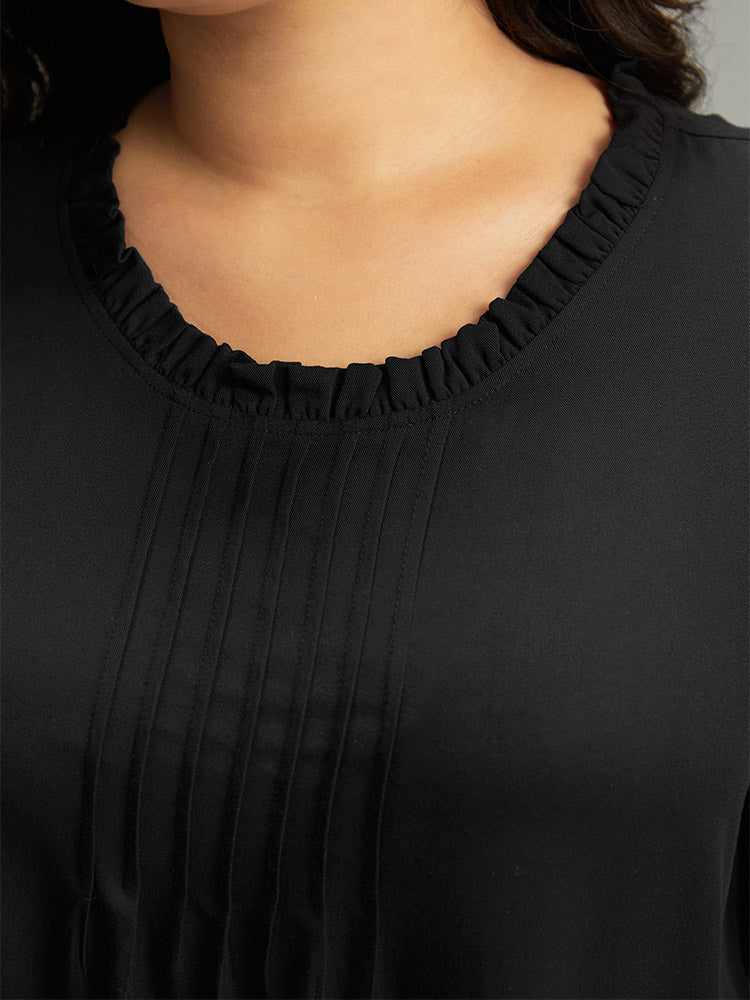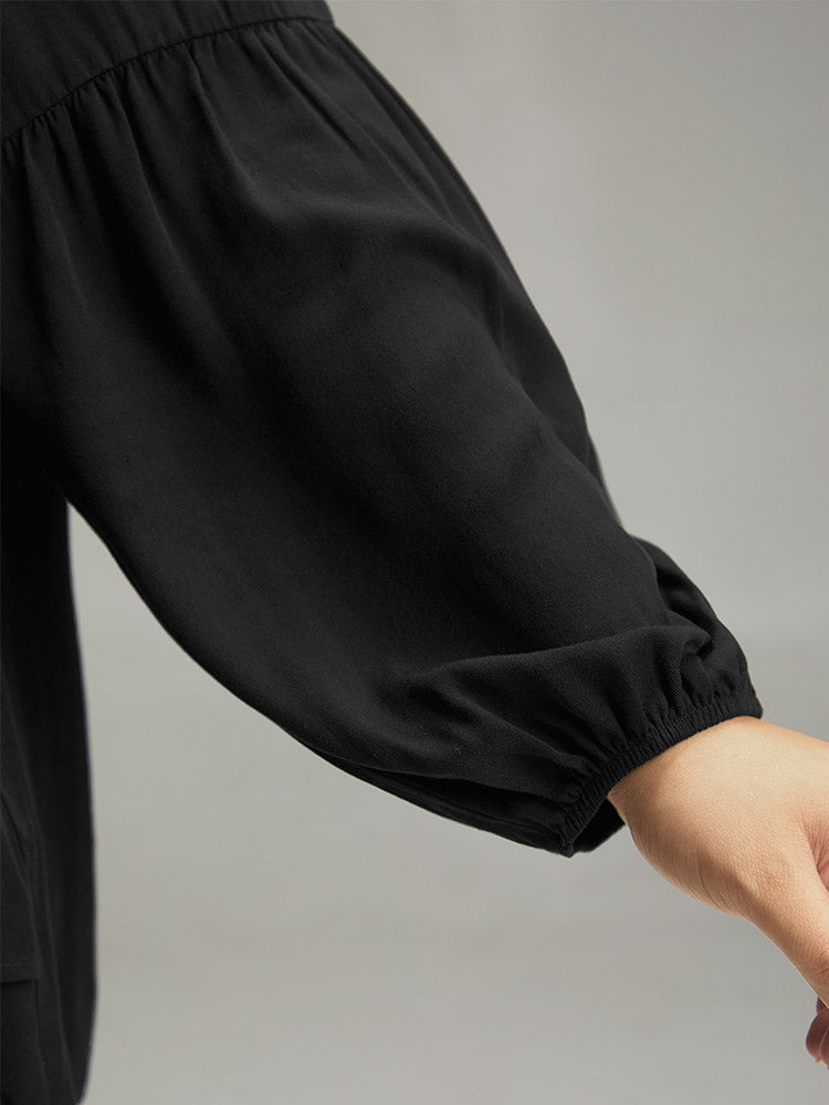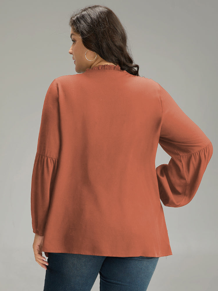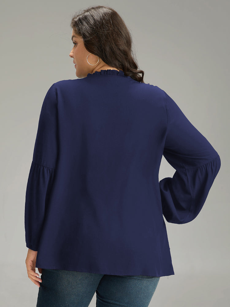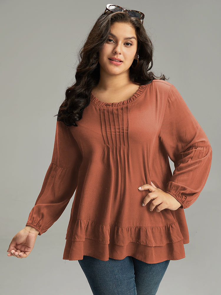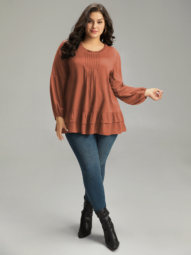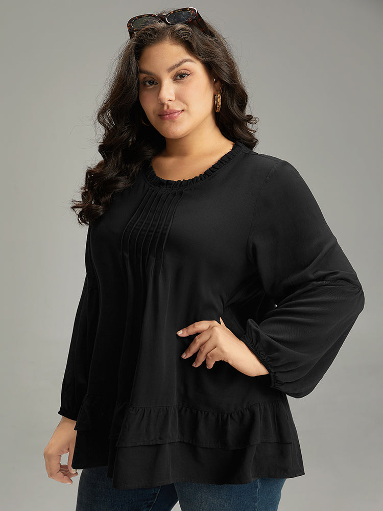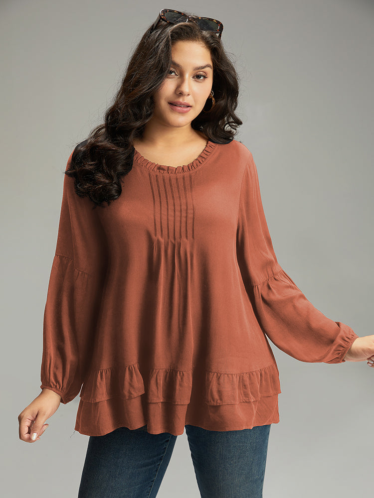 Shop Seam Detail Frill Trim Layered Blouse now and redefine your style with confidence at Sweetccc. Tailored for mid and plus-size women. This trendy Tops Women. sizes 10-30. Color:Indigo.Scarlet.OrangeRed.Black;Style:Elegant;Pattern Type:Plain;Neckline:Round Neck;Sleeve Type:Lantern Sleeve;Details:Ruffles. Pleated. Plain. Elastic cuffs. Tiered;Pocket:No-pocket