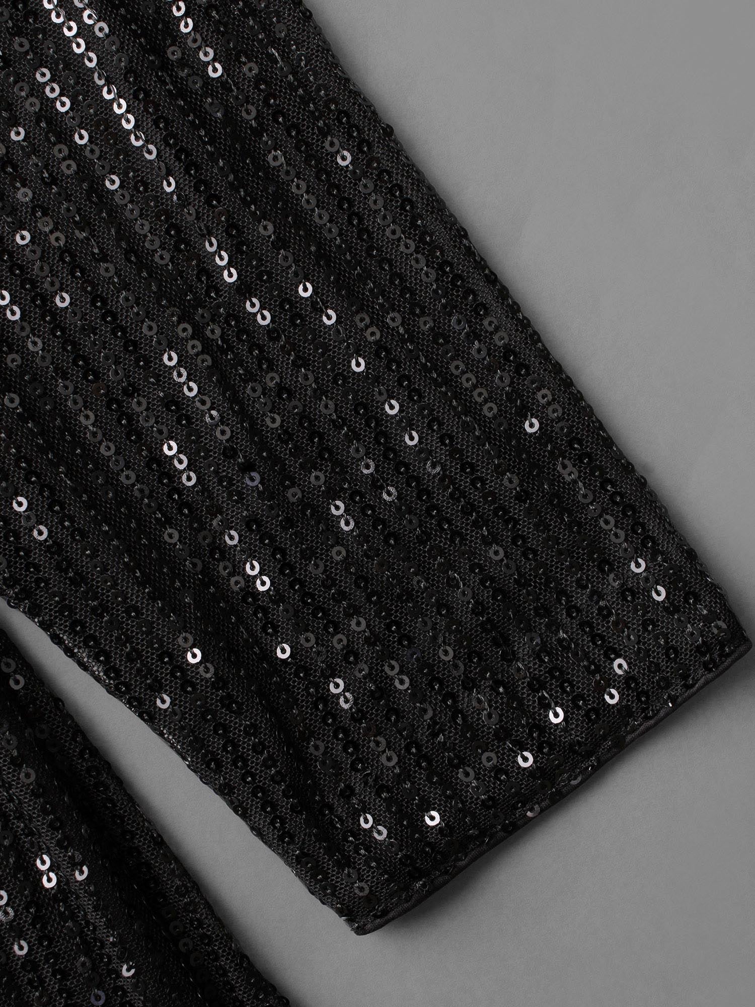 Sequin Mesh Asymmetrical Neck Midi Dress