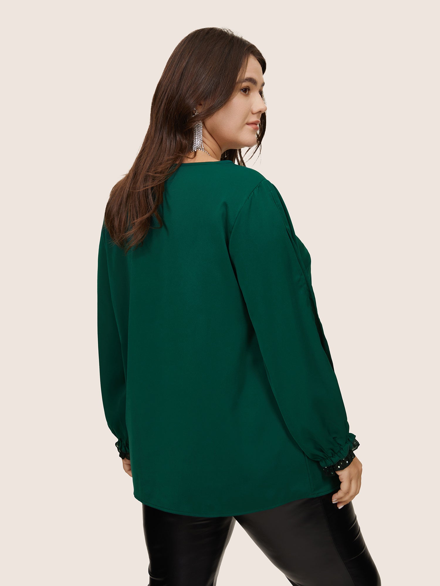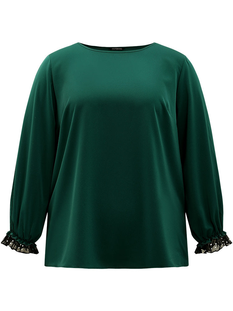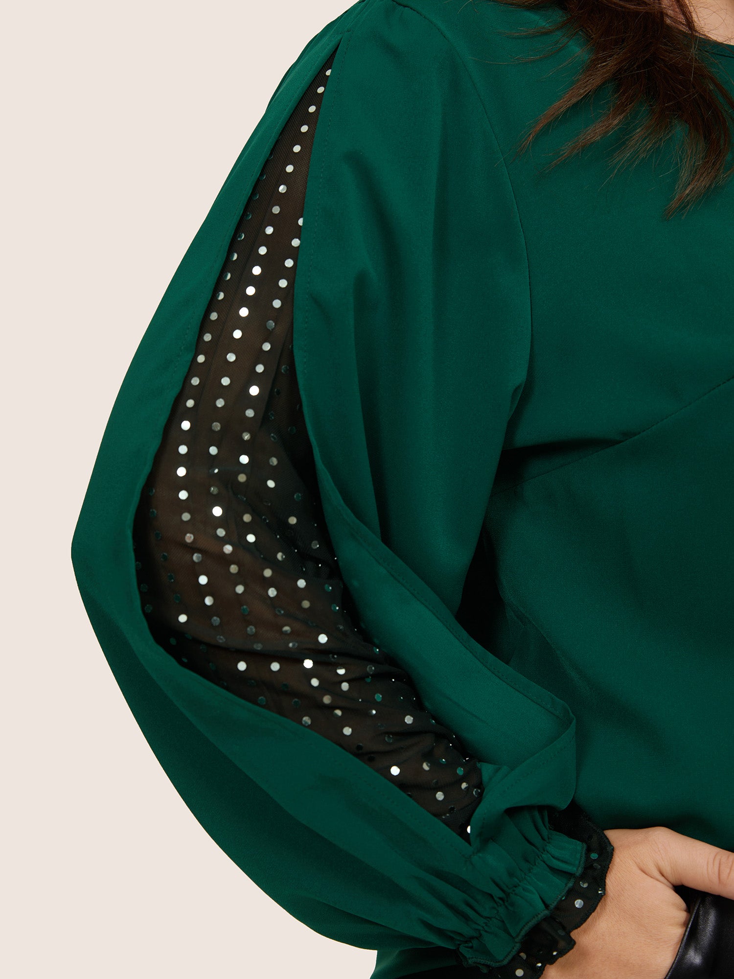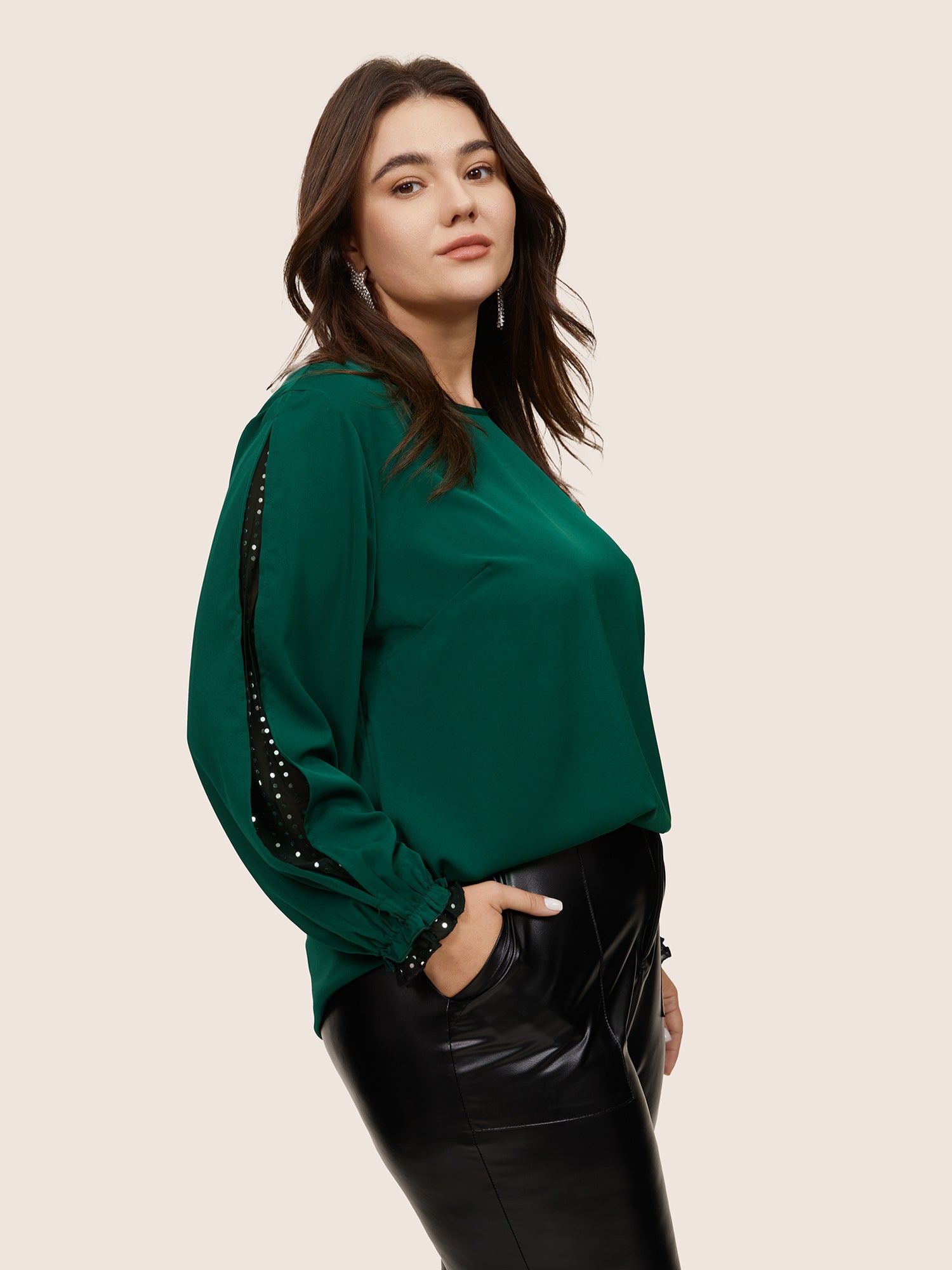 Shop Sequin Mesh Patchwork Lantern Sleeve Blouse now and redefine your style with confidence at Sweetccc. Tailored for mid and plus-size women. This trendy Tops Women. sizes 10-30. Season:Winter;Color:DarkGreen;Style:Glamour;Pattern Type:Plain;Neckline:Round Neck;Sleeve Type:Lantern Sleeve;Details:Ruffles. Patchwork. Contrast. See through. Sequin. Elastic cuffs;Pocket:No-pocket