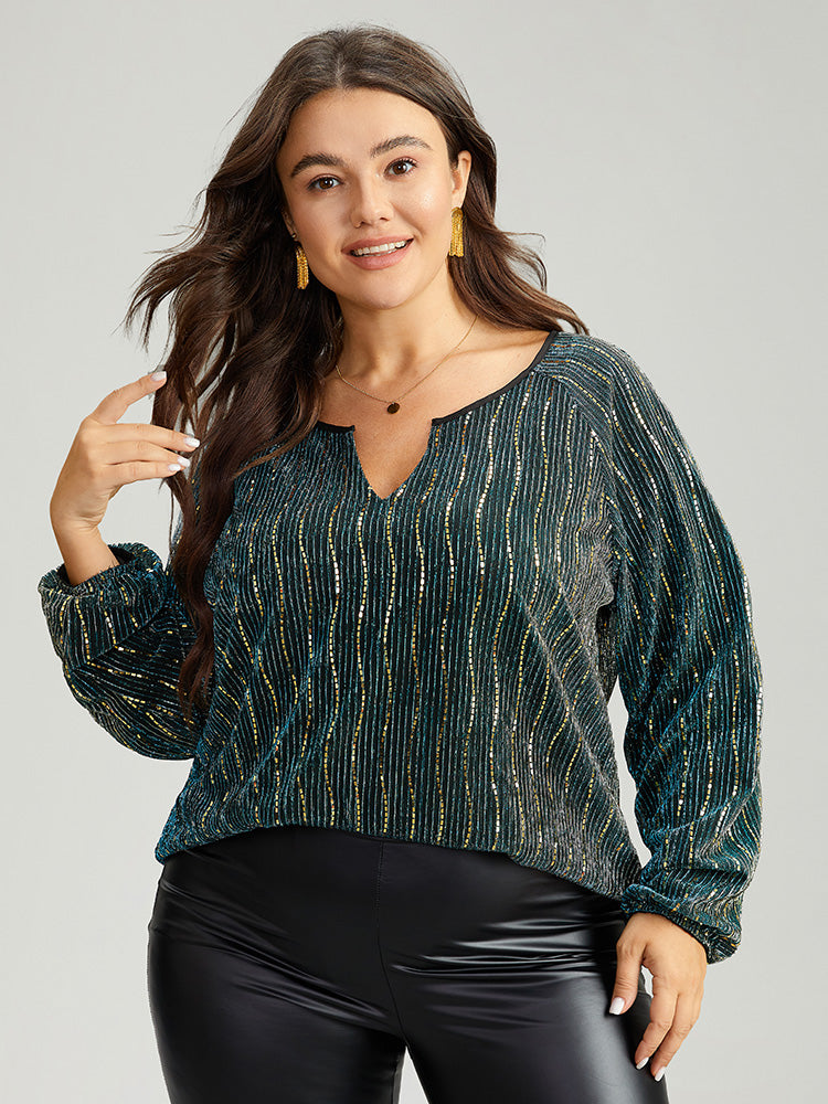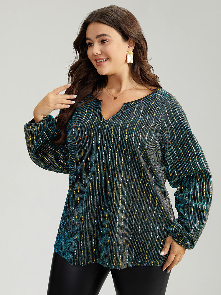 Shop Sequin Notched Lantern Sleeve Blouse now and redefine your style with confidence at Sweetccc. Tailored for mid and plus-size women. This trendy Tops Women. sizes 10-30. Season:Winter;Color:Cyan;Style:Party;Pattern Type:Plain;Neckline:Notched collar;Sleeve Type:Lantern Sleeve;Pocket:No-pocket