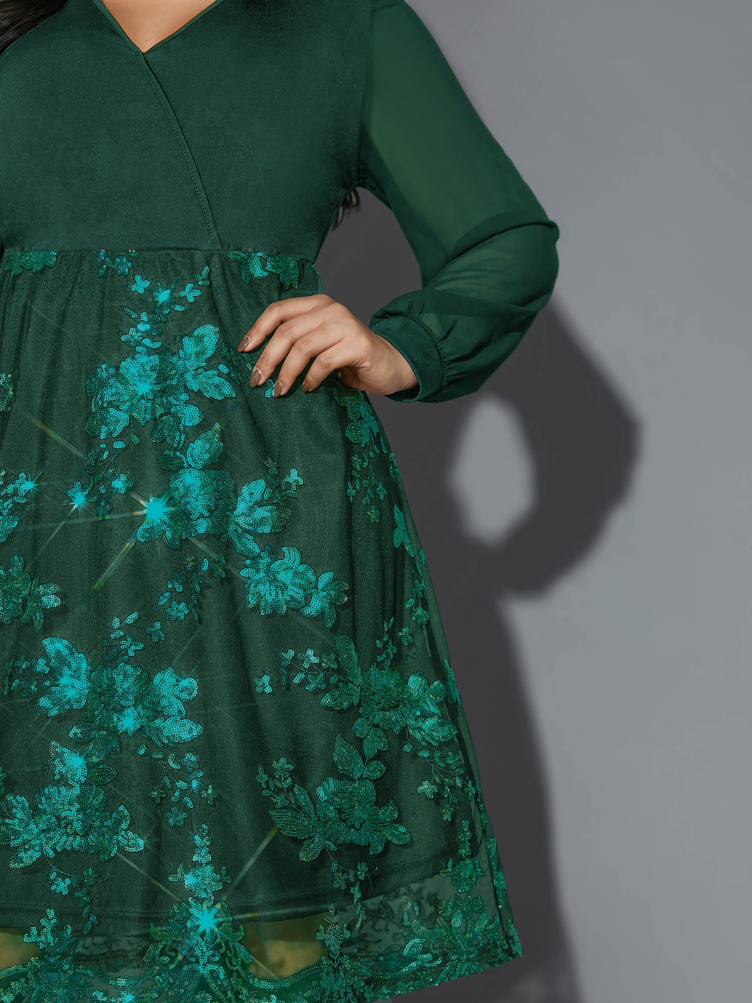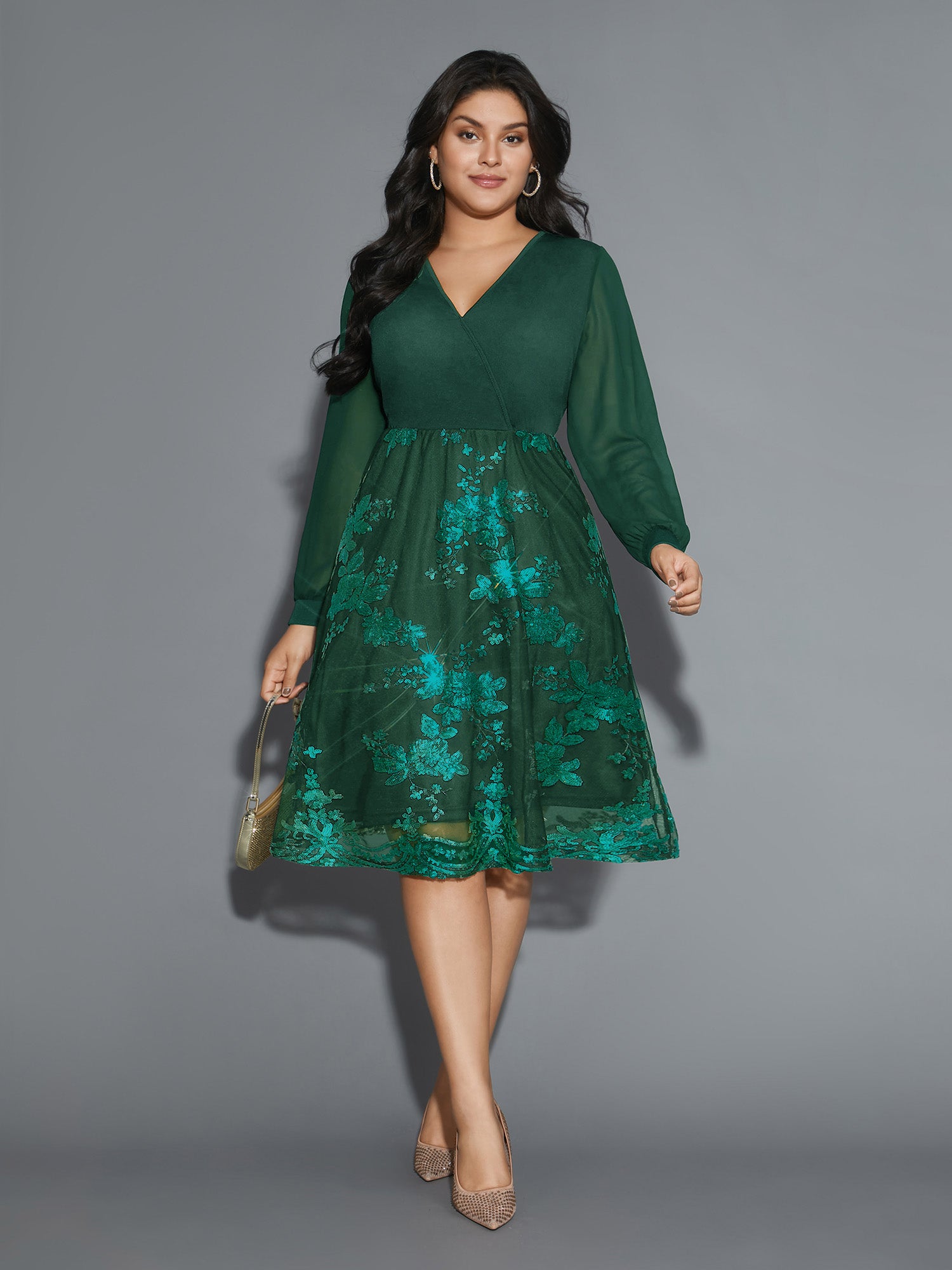 Shop Sequin Overlap Collar Sheer Sleeve Lined Dress at Sweetccc. Plus Size Clothing & Plus Size Occasion Dresses. Sweetccc is a digital-first fashion and lifestyle destination for modern women sizes 10-30.