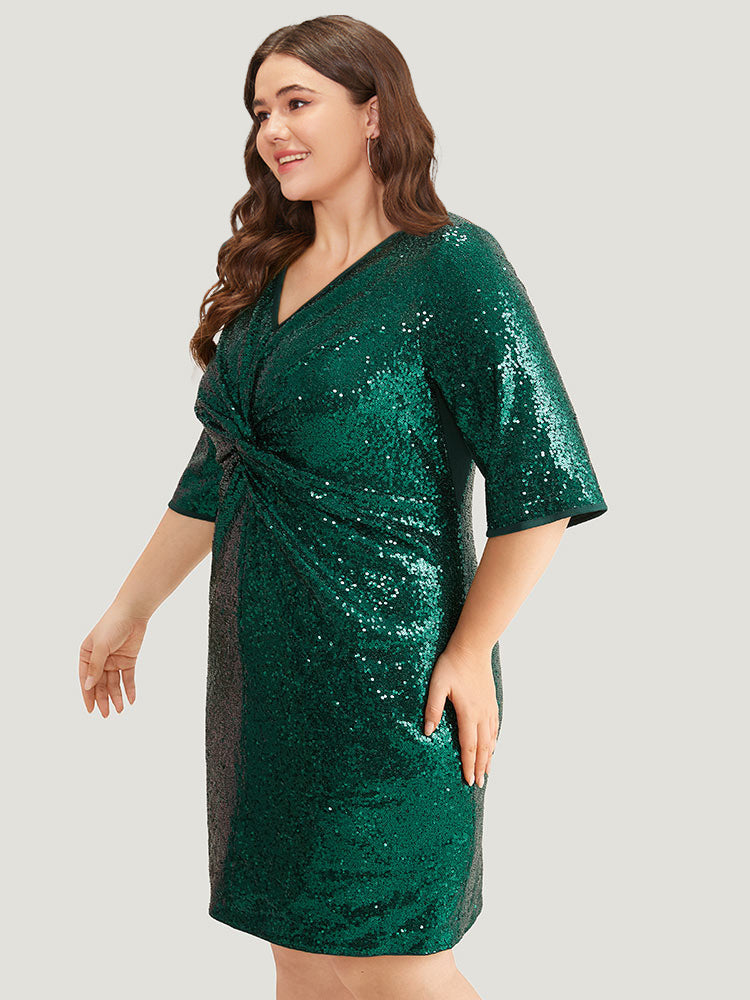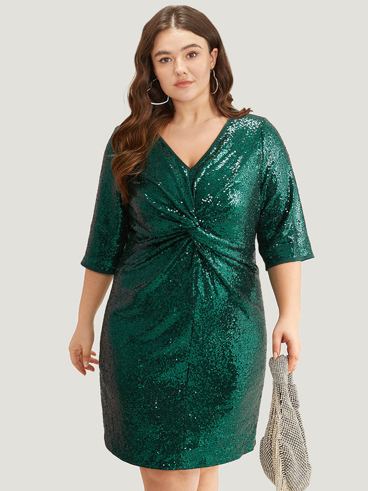Shop Sequin Twist Front V Neck Dress now and redefine your style with confidence at Sweetccc. Tailored for mid and plus-size women. This trendy Dress. sizes 10-30. You can never go wrong with Sweetccc Dresses. Season:Winter;Color:DarkGreen;Style:Party;Neckline:V-neck;Sleeve Type:Regular Sleeve;Pattern Type:Plain;Details:Twist-front. Plain;Pocket:No-pocket;Belt:No-belt