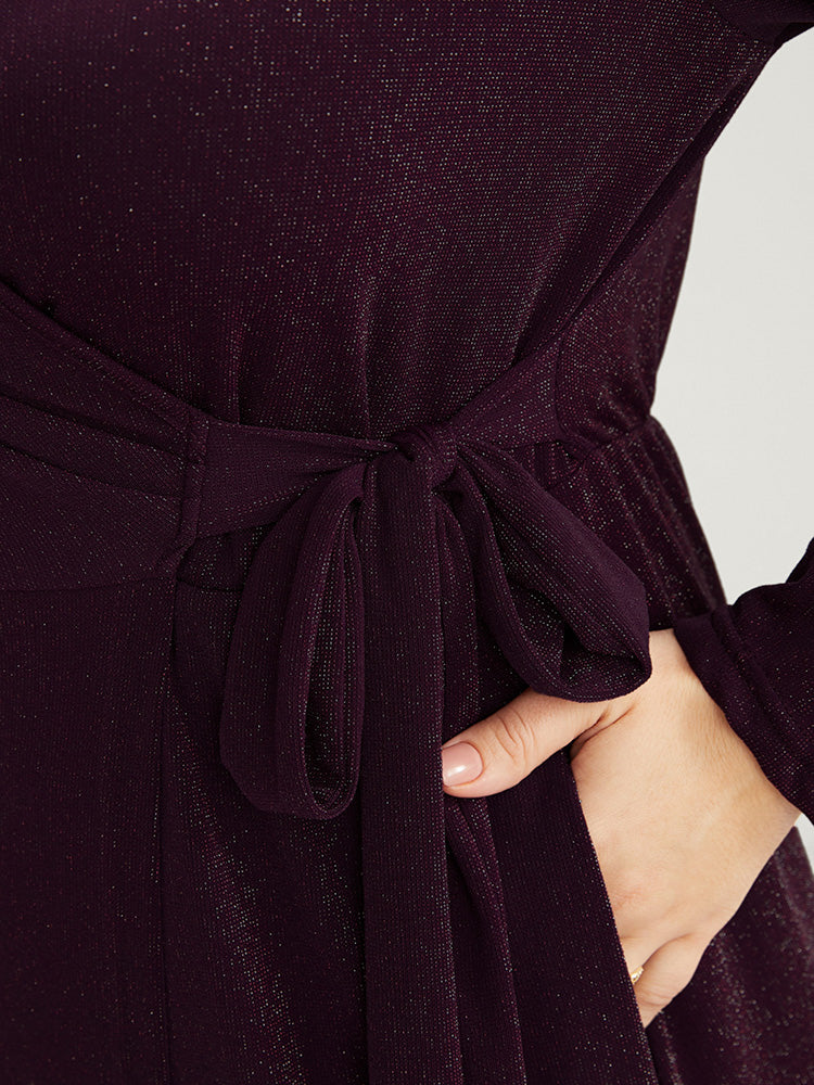Shop Sequin Wrap Knotted Side Pocket Asymmetrical Hem Dress now and redefine your style with confidence at Sweetccc. Tailored for mid and plus-size women. This trendy Dress. sizes 10-30. You can never go wrong with Sweetccc Dresses. Season:Winter;Color:Eggplant;Neckline:V-neck;Sleeve Type:Regular Sleeve;Details:Asymmetrical. Pocket. Elastic Waist. Knotted;Pocket:It is perfectly sized to carry a phone.;Snap Fastener:Snap fastener;Belt:No-belt;Closure Type:Elastic Waist