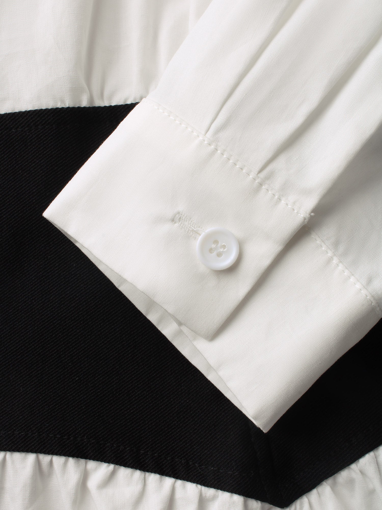 Shop Shirt Collar Contrast Patchwork Shirt now and redefine your style with confidence at Sweetccc. Tailored for mid and plus-size women. This trendy Tops Women. sizes 10-30. Season:Winter;Color:Originalwhite;Style:Casual;Prints:Non;Neckline:Shirt collar;Sleeve Type:Gathered cuff;Details:Contrast. Patchwork. Button. Gathered;Pocket:No-pocket