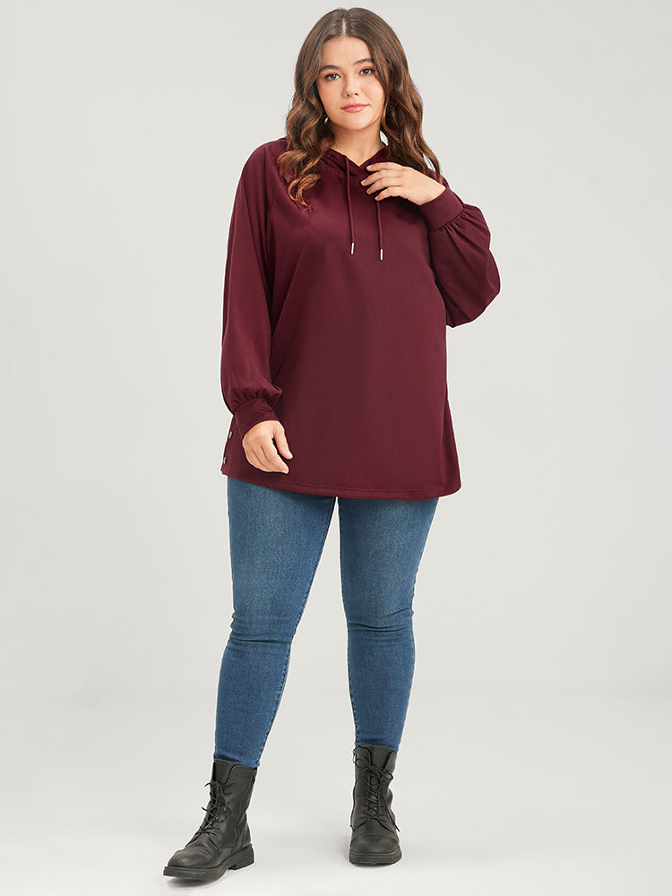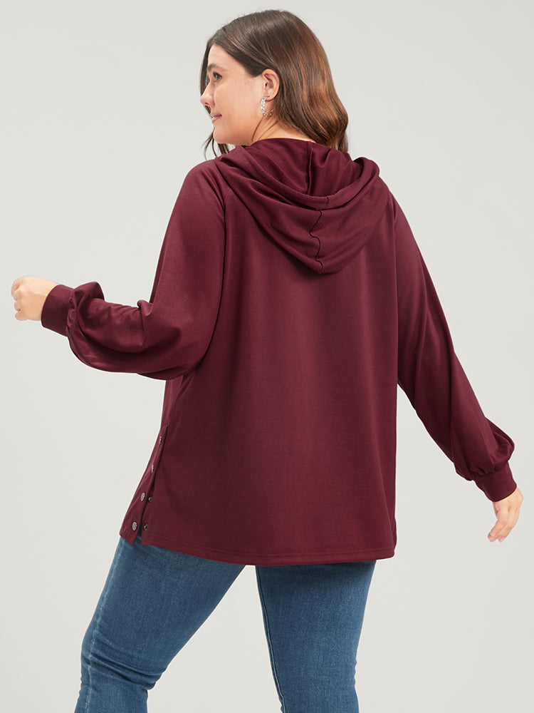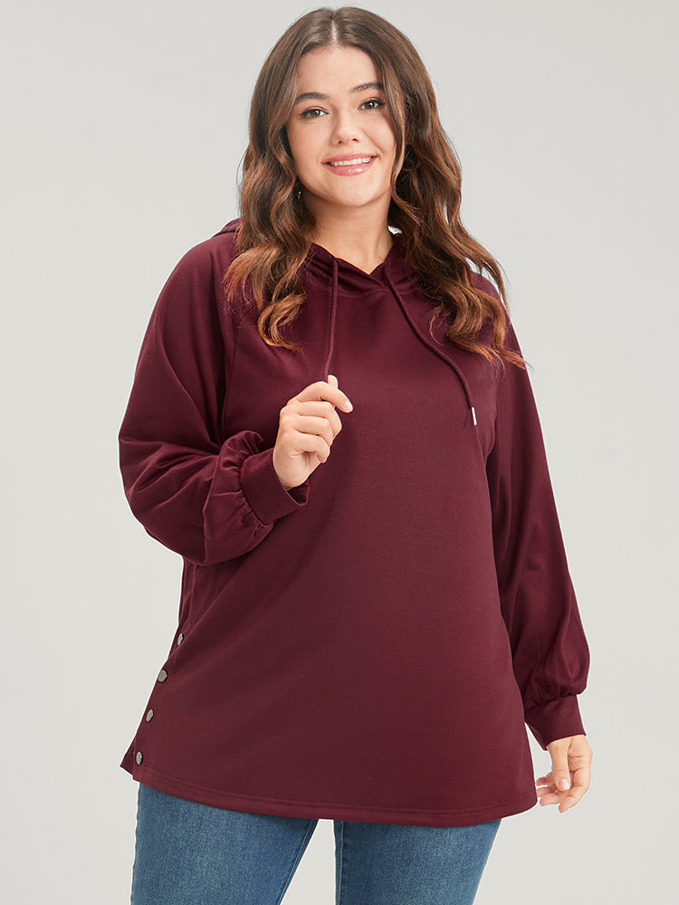 Shop Solid Button Side Drop Shoulder Hooded Sweatshirt now and redefine your style with confidence at Sweetccc. Tailored for mid and plus-size women. This trendy Tops Women. sizes 10-30. Season:Winter;Color:Scarlet;Style:Casual;Neckline:Hooded;Sleeve Type:Regular Sleeve;Details:Button;Pocket:No-pocket;Belt:No-belt