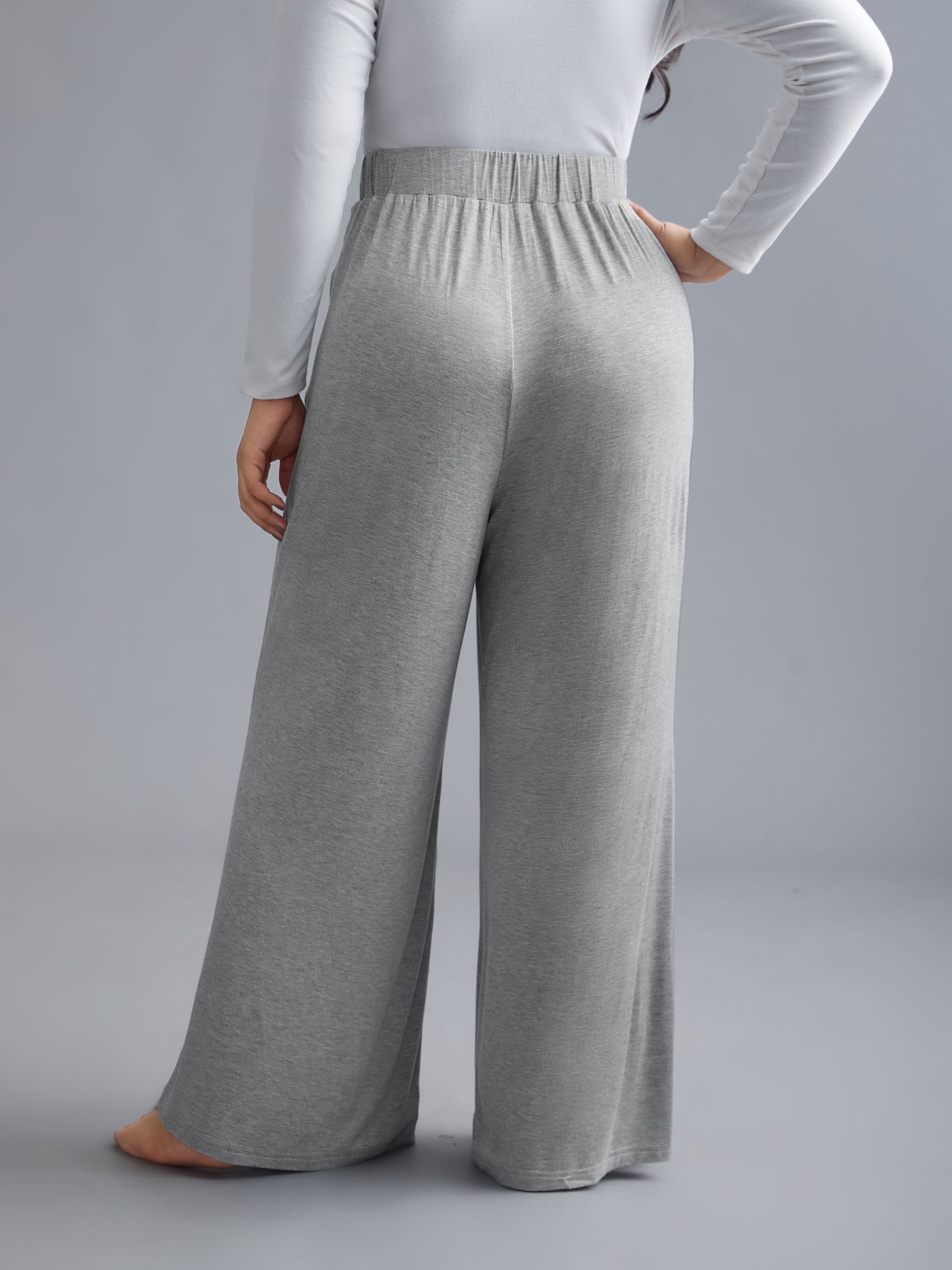 Solid Elastic Waist Wide Leg Lounge Bottoms