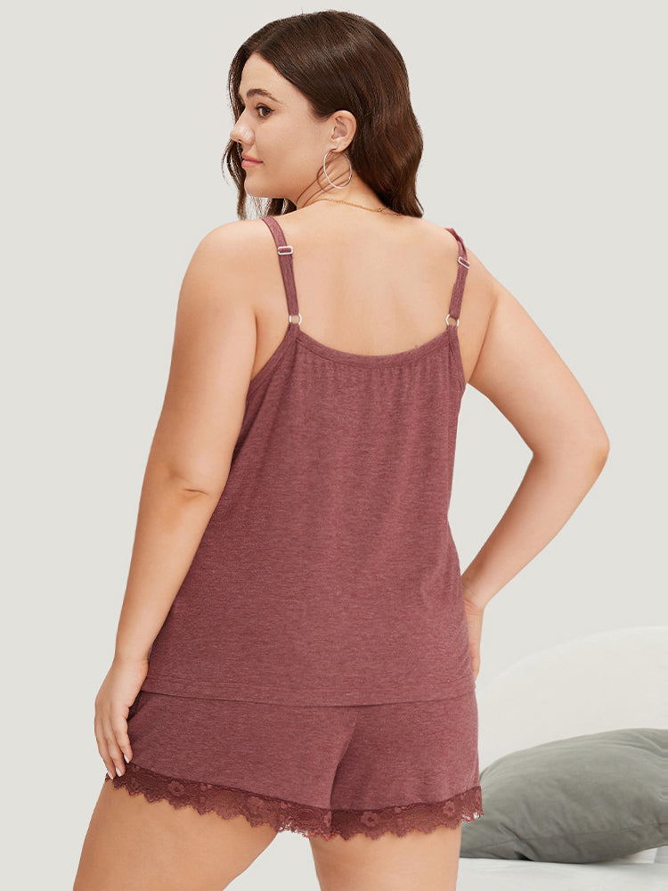 Shop Solid Eyelet Lace Adjustable Straps Sleep Cami Top now and redefine your style with confidence at Sweetccc. Tailored for mid and plus-size women. This trendy Loungewear Women. sizes 10-30. Season:Summer;Color:Russet;Style:Elegant;Neckline:V-neck;Sleeve Type:Sleeveless;Pattern Type:Plain;Details:Lace. Patchwork;Pocket:No-pocket;Belt:No-belt