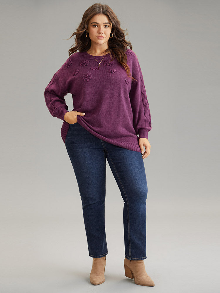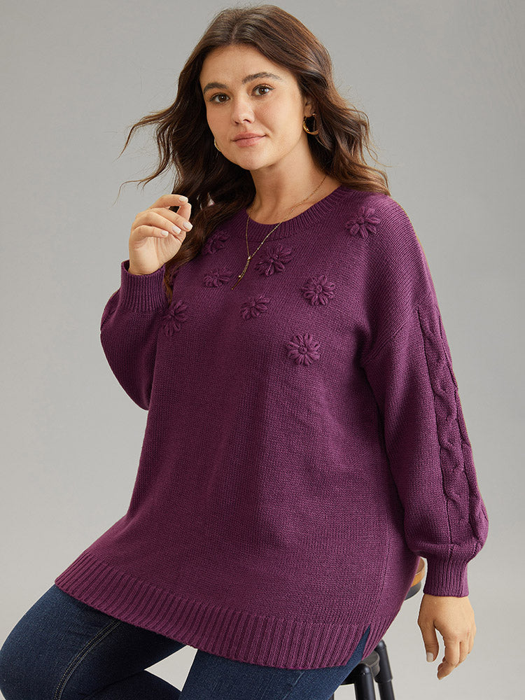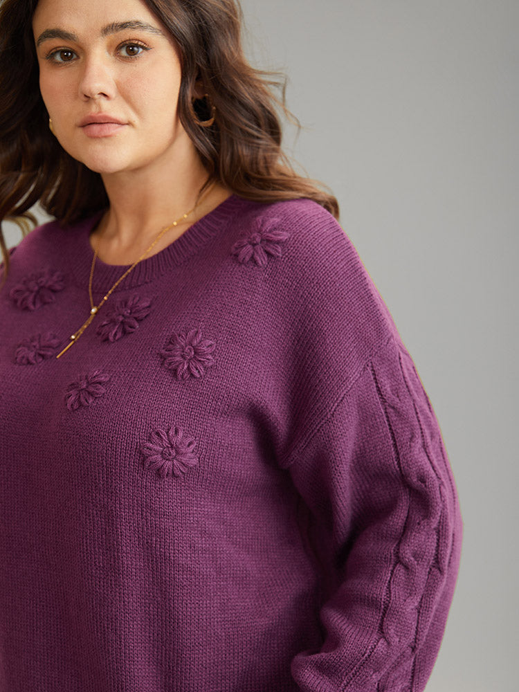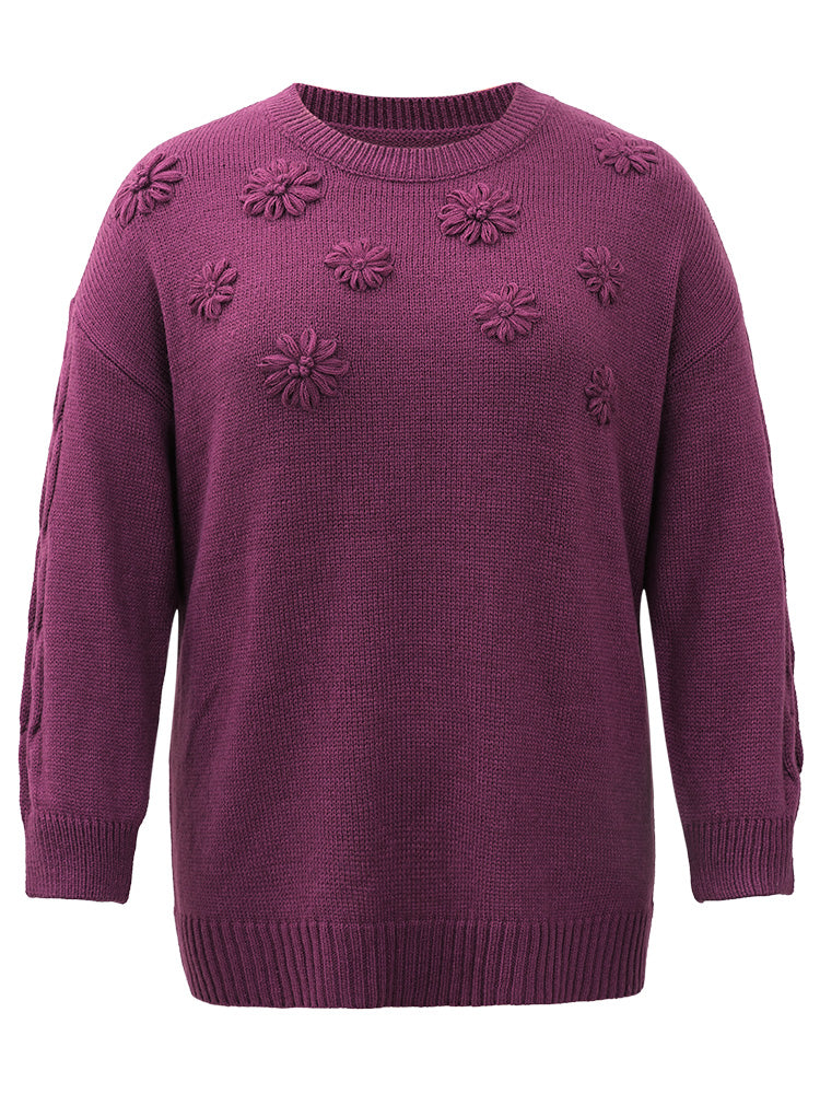 Shop Plisse Floral Solid Elastic Cuffs Pullover now and redefine your style with confidence at Sweetccc. Tailored for mid and plus-size women. This trendy Sweaters Cardigans Women. sizes 10-30. Season:Winter;Color:Purple;Style:Casual;Neckline:Round Neck;Sleeve Type:Regular Sleeve;Pattern Type:Floral;Details:Plain. Texture. Elastic cuffs;Pocket:No-pocket;Belt:No-belt