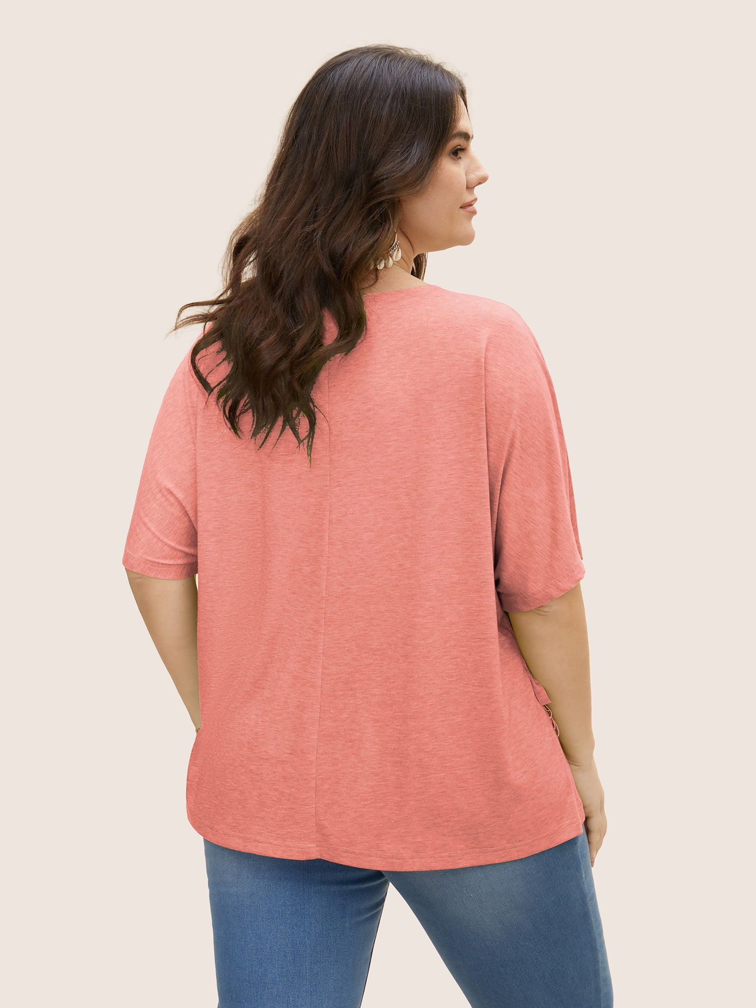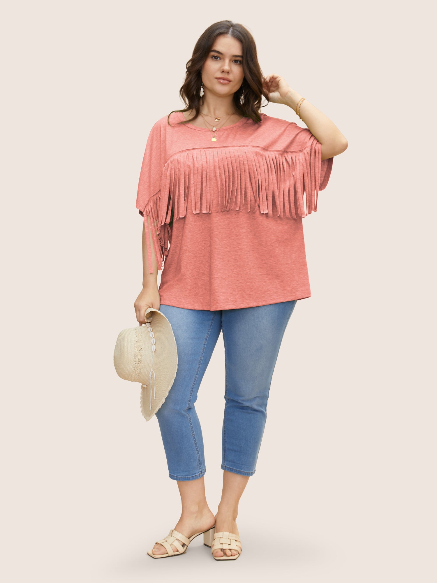 Shop Solid Fringe Trim Batwing Sleeve T-shirt now and redefine your style with confidence at Sweetccc. Tailored for mid and plus-size women. This trendy Tops Women. sizes 10-30. Color:Applegreen.Salmon;Style:Resort;Prints:Non;Neckline:Round Neck;Sleeve Type:Raglan sleeve;Details:Non;Pocket:No-pocket