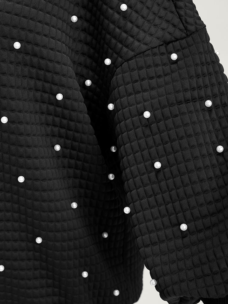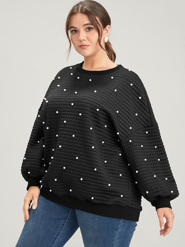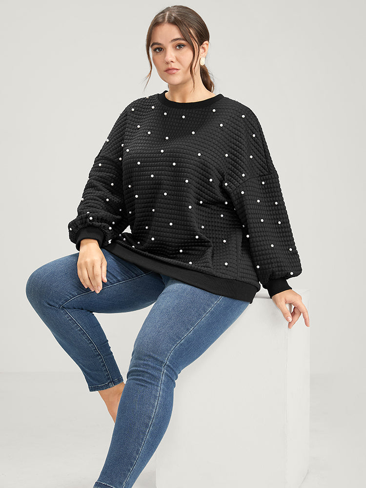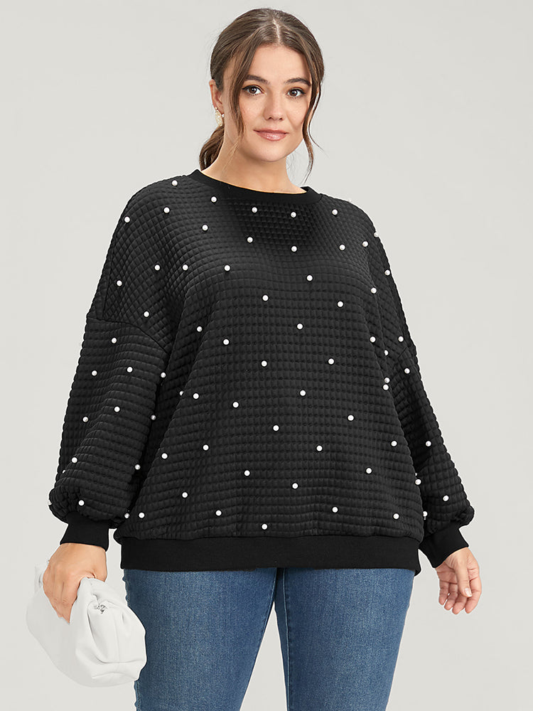 Shop Solid Texture Pearls Beaded Sweatshirt now and redefine your style with confidence at Sweetccc. Tailored for mid and plus-size women. This trendy Tops Women. sizes 10-30. Season:Winter;Color:Black;Neckline:Round Neck;Sleeve Type:Regular Sleeve;Details:Beaded;Pocket:No-pocket;Snap Fastener:No-snap fastener;Belt:No-belt