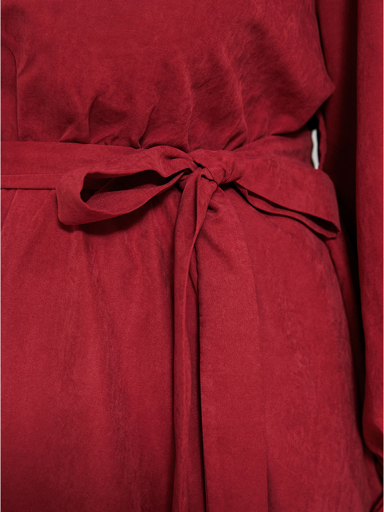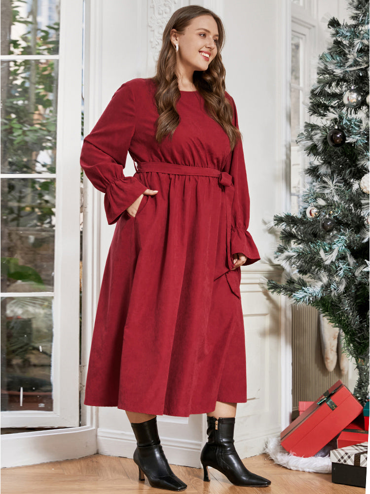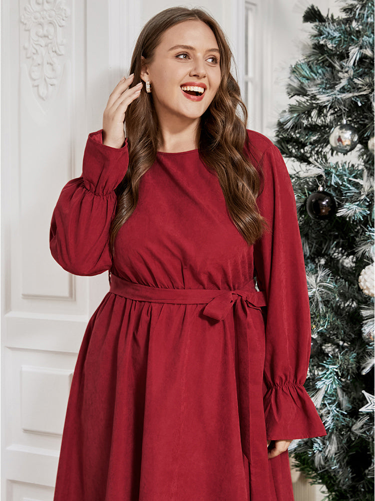 Shop Solid Round Neck Pocket Belted Lantern Sleeve Dress now and redefine your style with confidence at Sweetccc. Tailored for mid and plus-size women. This trendy Dress. sizes 10-30. You can never go wrong with Sweetccc Dresses. Season:Winter;Color:Scarlet;Style:Dating;Neckline:Round Neck;Sleeve Type:Lantern Sleeve;Pocket:It is perfectly sized to carry a phone.;Belt:Belt