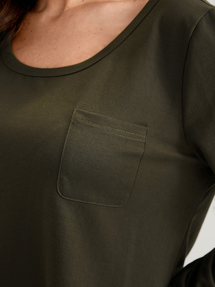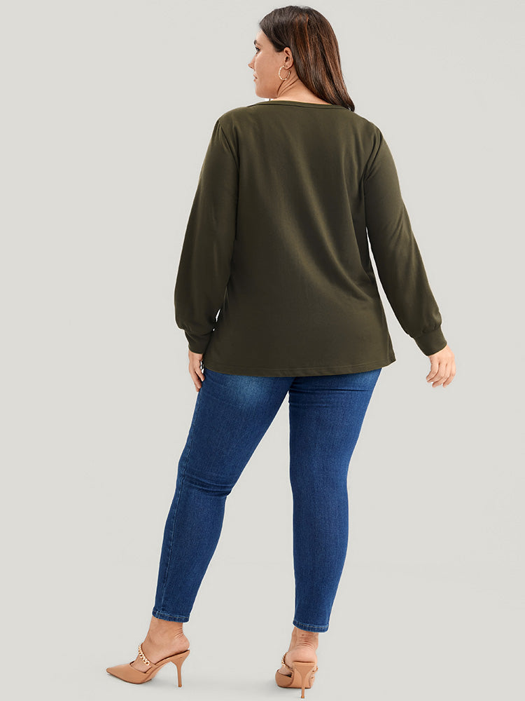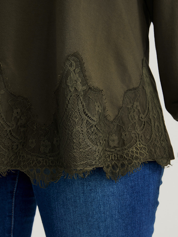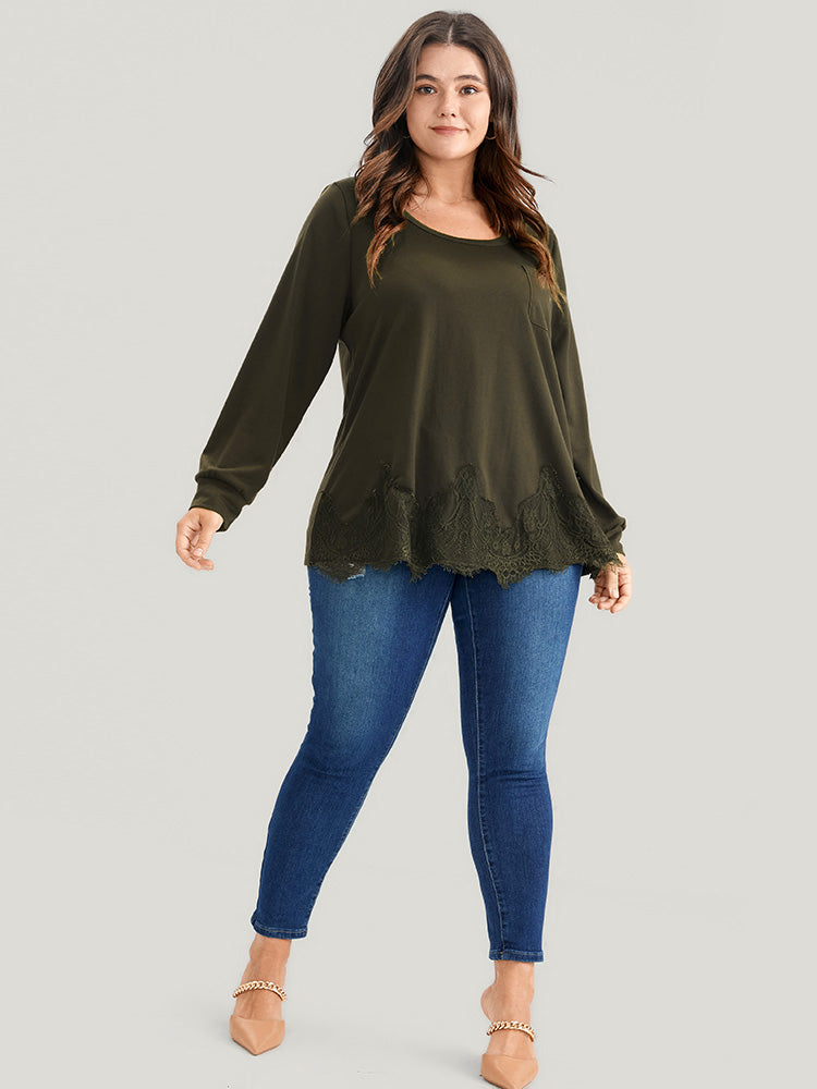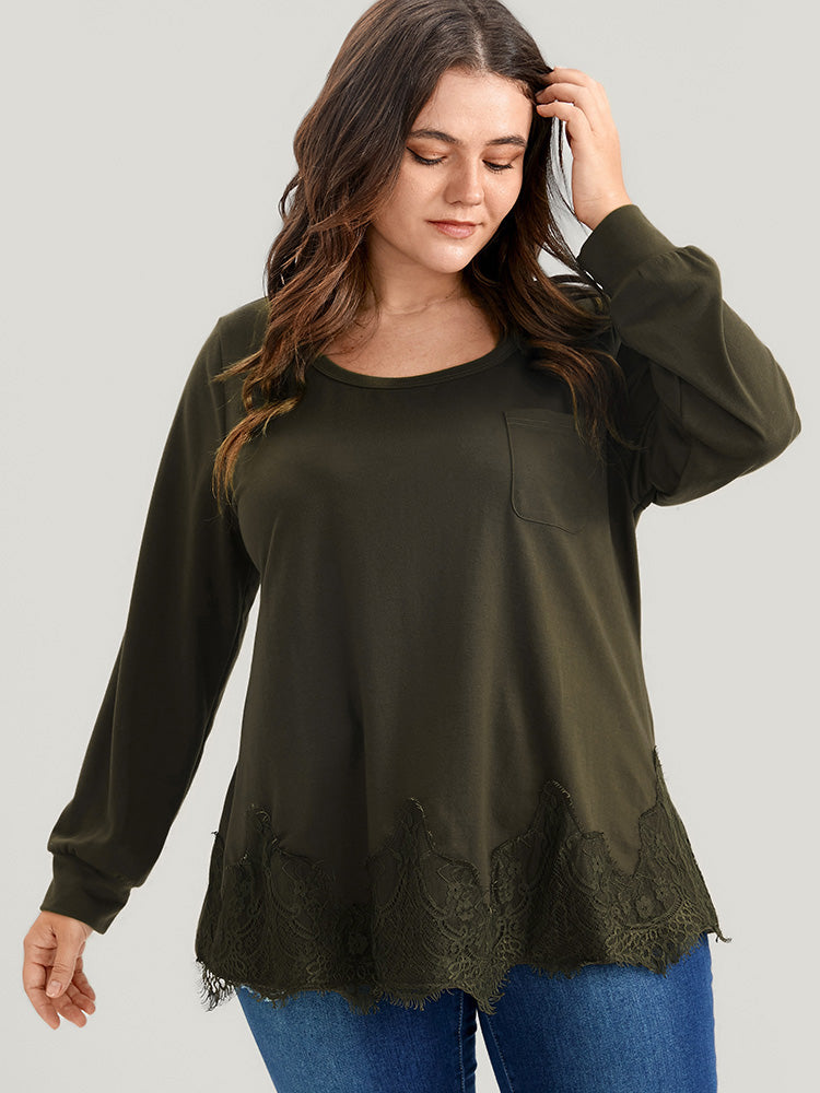 Shop Solid Round Neck Pocket Lace Hem Sweatshirt now and redefine your style with confidence at Sweetccc. Tailored for mid and plus-size women. This trendy Tops Women. sizes 10-30. Season:Winter;Color:ArmyGreen;Neckline:Round Neck;Sleeve Type:Regular Sleeve;Details:Patchwork. Lace;Pocket:It is perfectly sized to carry a phone.;Belt:No-belt