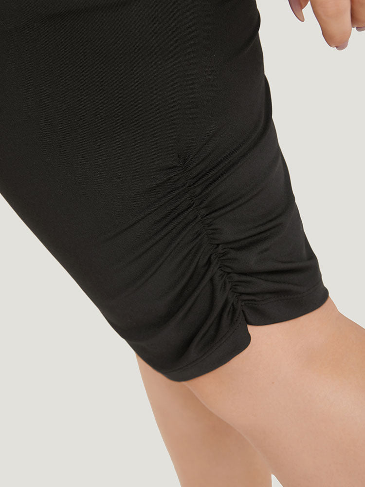 Shop Solid Ruched Wideband Waist At The Knees Leggings now and redefine your style with confidence at Sweetccc. Tailored for mid and plus-size women. This trendy Bottoms Women. sizes 10-30. Season:Summer;Color:Black;Style:Elegant;Waist Design:High Rise;Pattern Type:Plain;Details:Plain. Gathered. Elastic Waist;Pocket:No-pocket;Belt:No-belt;Closure Type:Elastic Waist