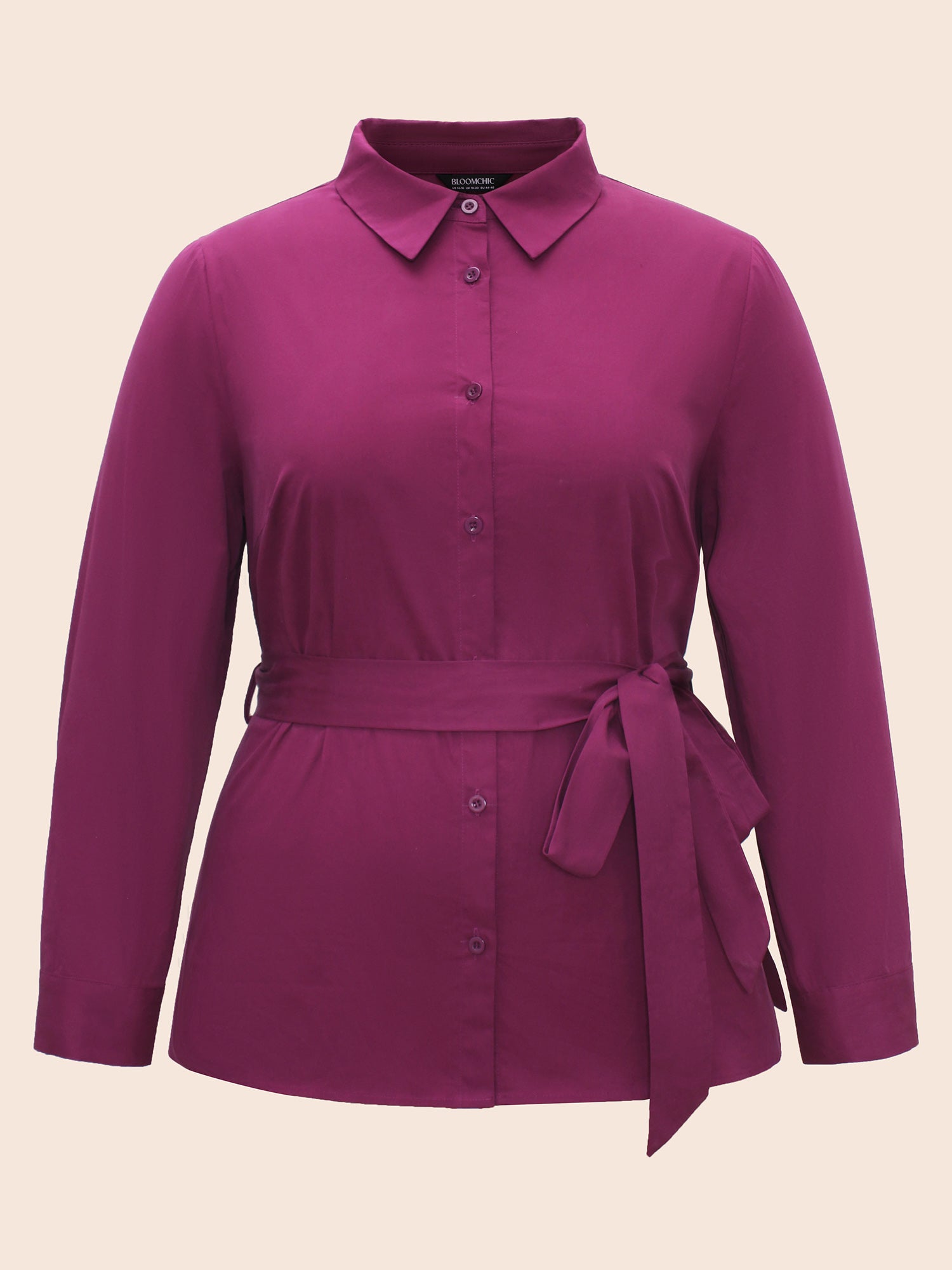 Shop Solid Shirt Collar Tie Knot Shirt now and redefine your style with confidence at Sweetccc. Tailored for mid and plus-size women. This trendy Tops Women. sizes 10-30. Season:Winter;Color:RedViolet;Style:Casual Everyday;Prints:Non;Neckline:Shirt collar;Sleeve Type:Gathered cuff;Details:Belted. Button;Pocket:No-pocket