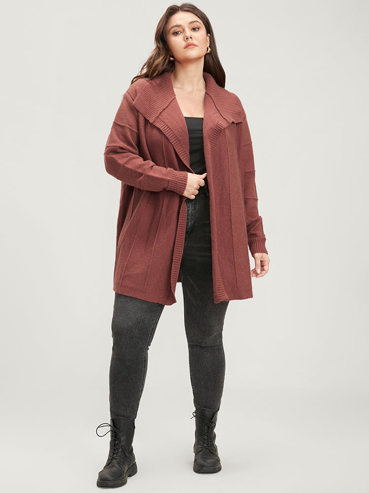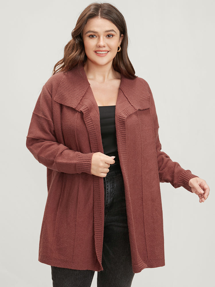 Shop Solid Soft Glamorous Yarn Knit Lapel Collar Open Front Cardigan now and redefine your style with confidence at Sweetccc. Tailored for mid and plus-size women. This trendy Sweaters Cardigans Women. sizes 10-30. Season:Winter;Color:Maroon;Style:Casual;Neckline:Lapel Collar;Sleeve Type:Regular Sleeve;Pattern Type:Plain;Details:Plain;Pocket:No-pocket;Belt:No-belt